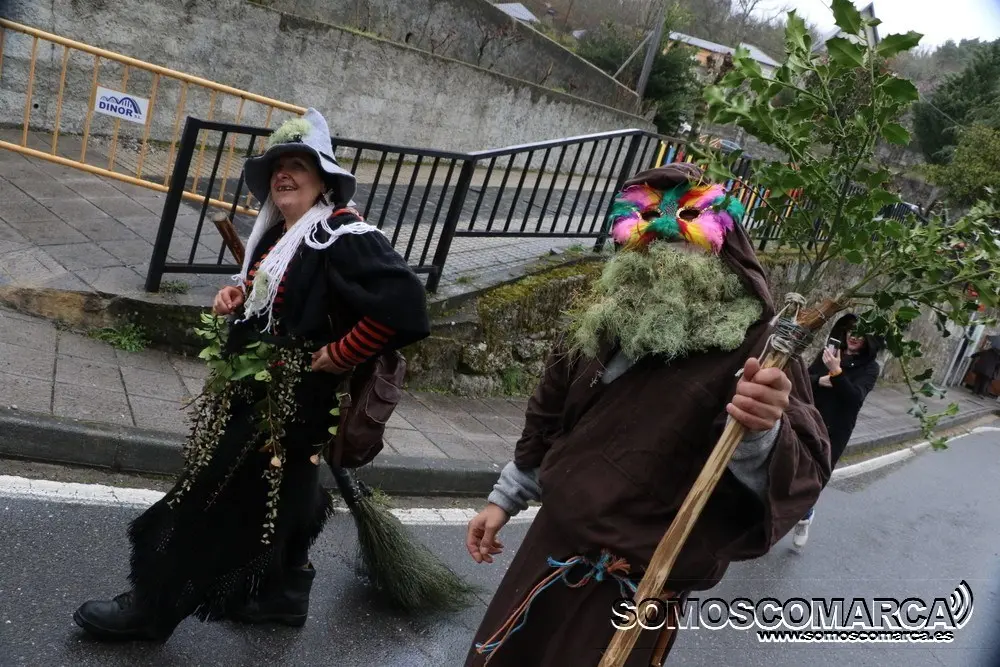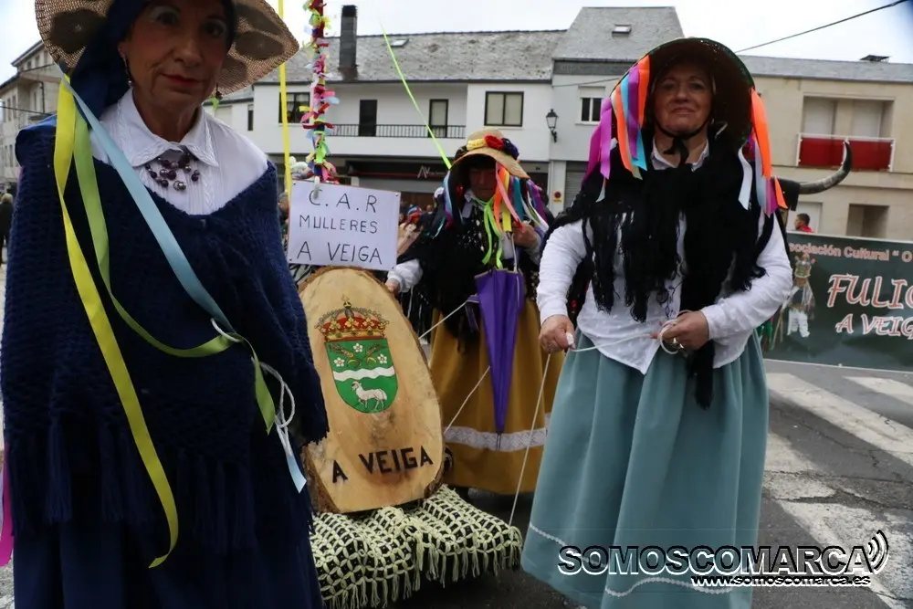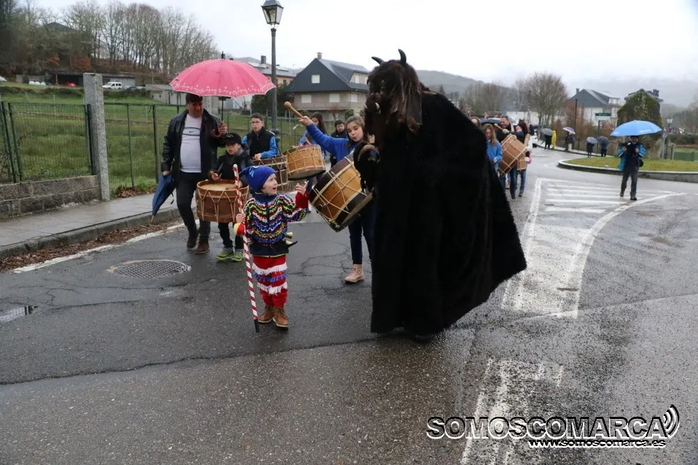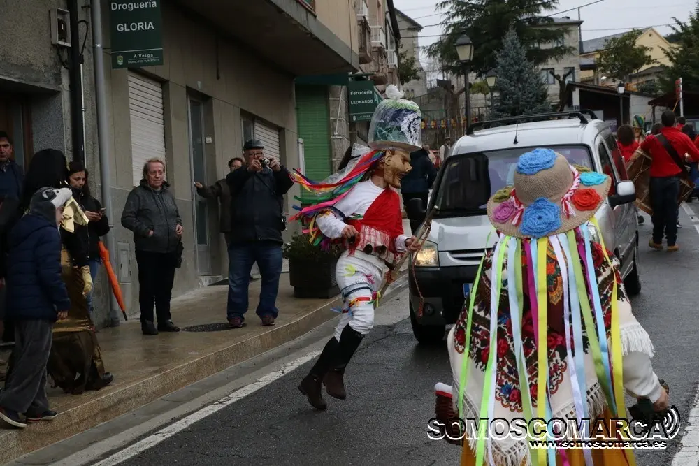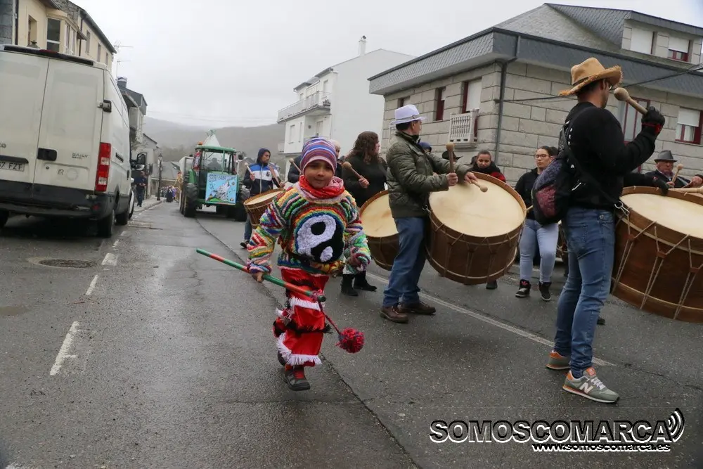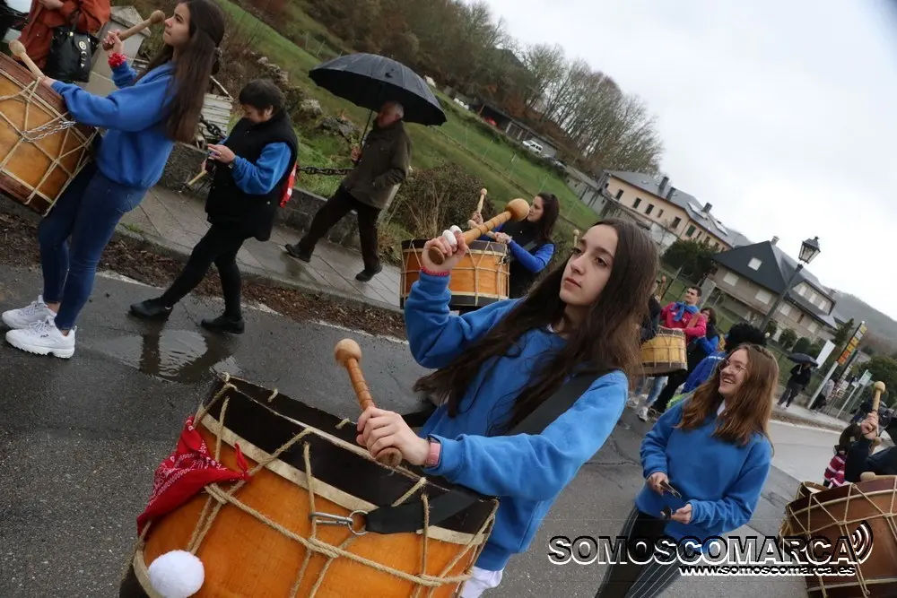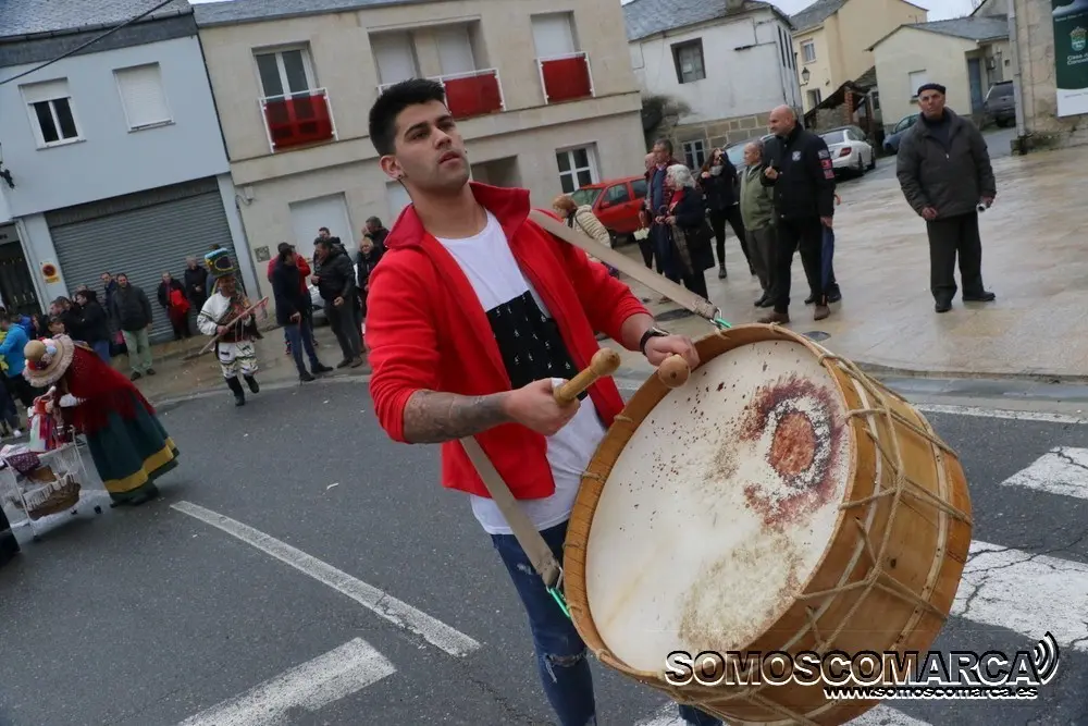 Aunque de forma intermitente la lluvia fue protagonista del desfile, eso sí, no lo deslució y los folións y comparsas recorrieron las calles del pueblo sin ningún incidente. Desde Chandrexa, Viana, A Veiga y Penouta llegaron los foliones, mientras que la Faba Loba de Trevinca fue la protagonista de 2 de las comparsas.