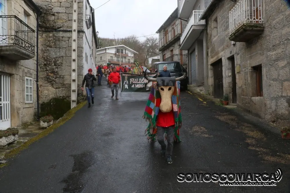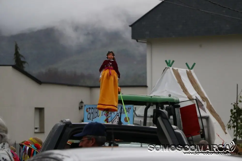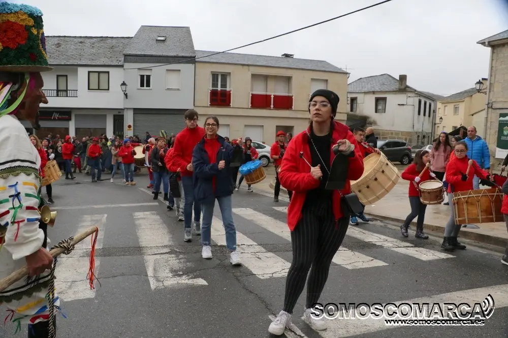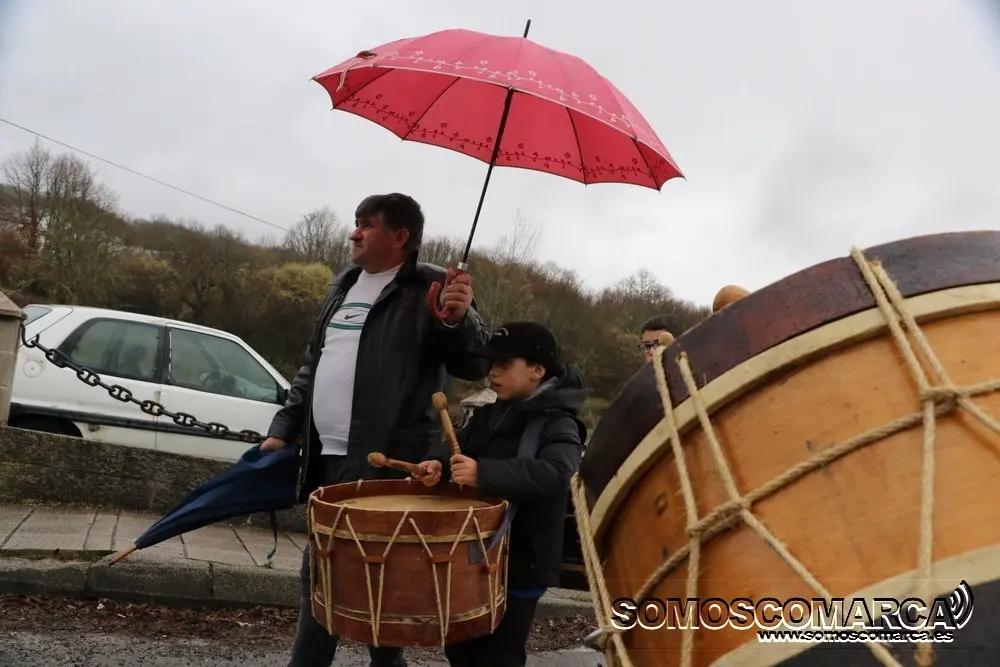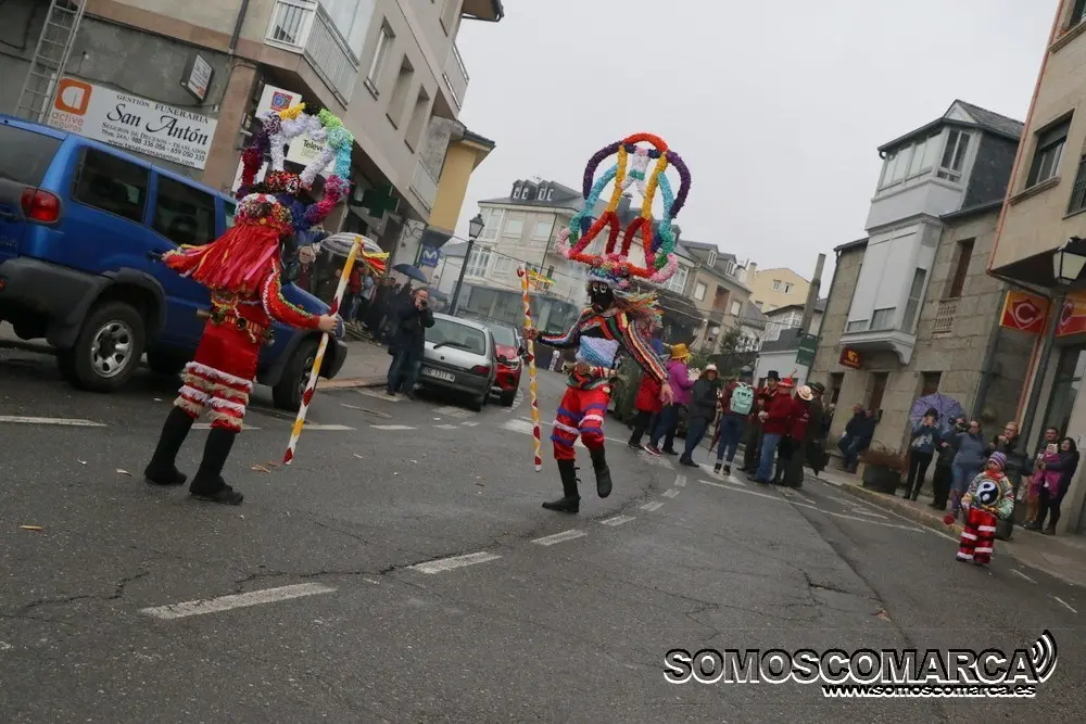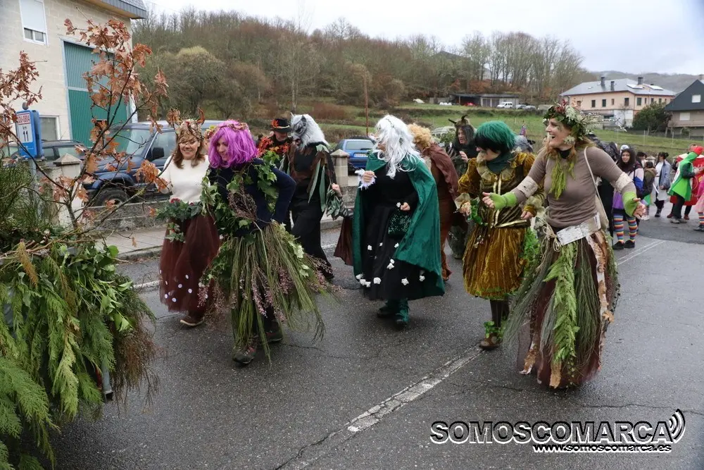 Aunque de forma intermitente la lluvia fue protagonista del desfile, eso sí, no lo deslució y los folións y comparsas recorrieron las calles del pueblo sin ningún incidente. Desde Chandrexa, Viana, A Veiga y Penouta llegaron los foliones, mientras que la Faba Loba de Trevinca fue la protagonista de 2 de las comparsas.