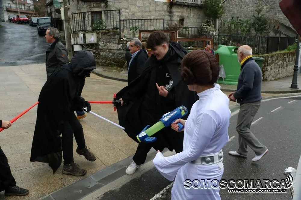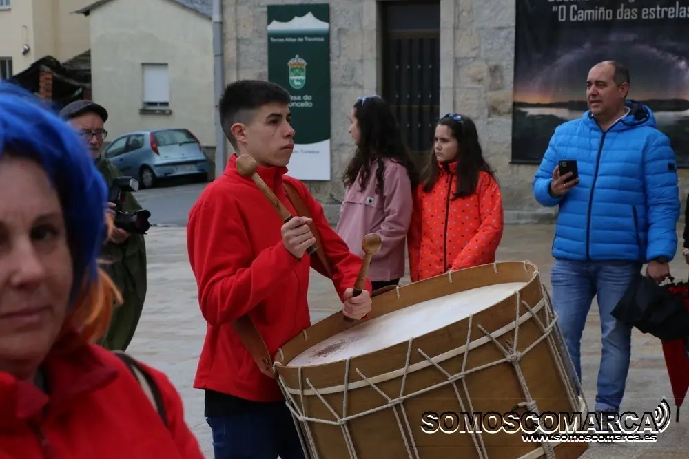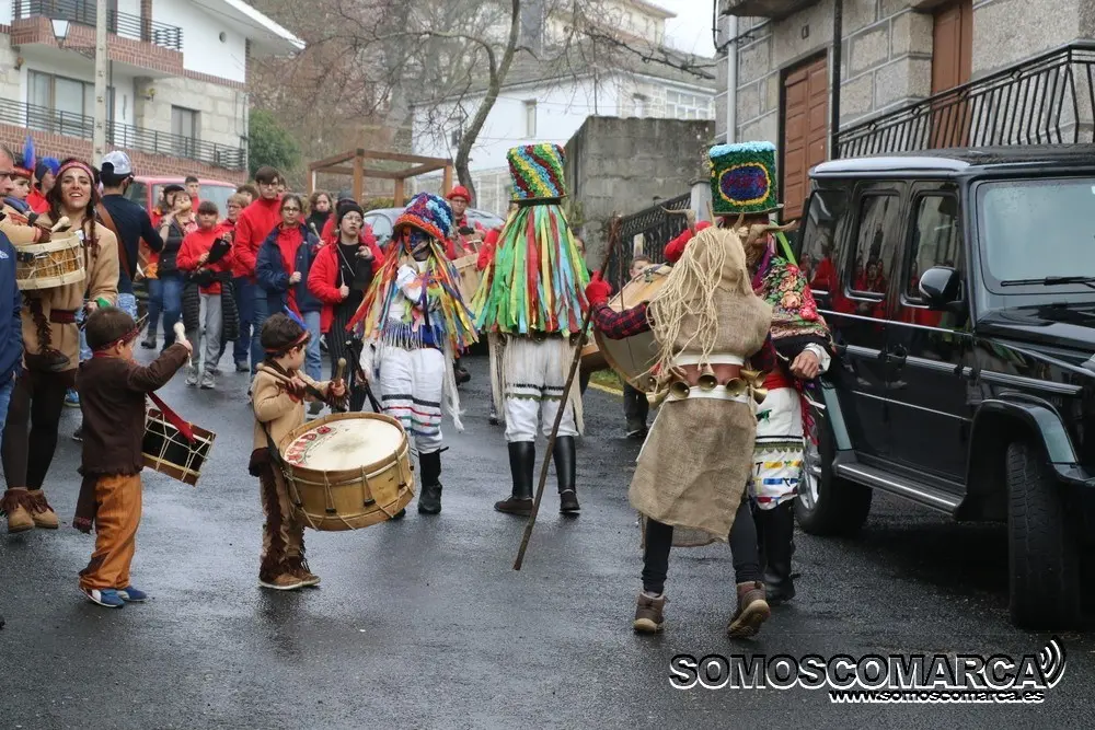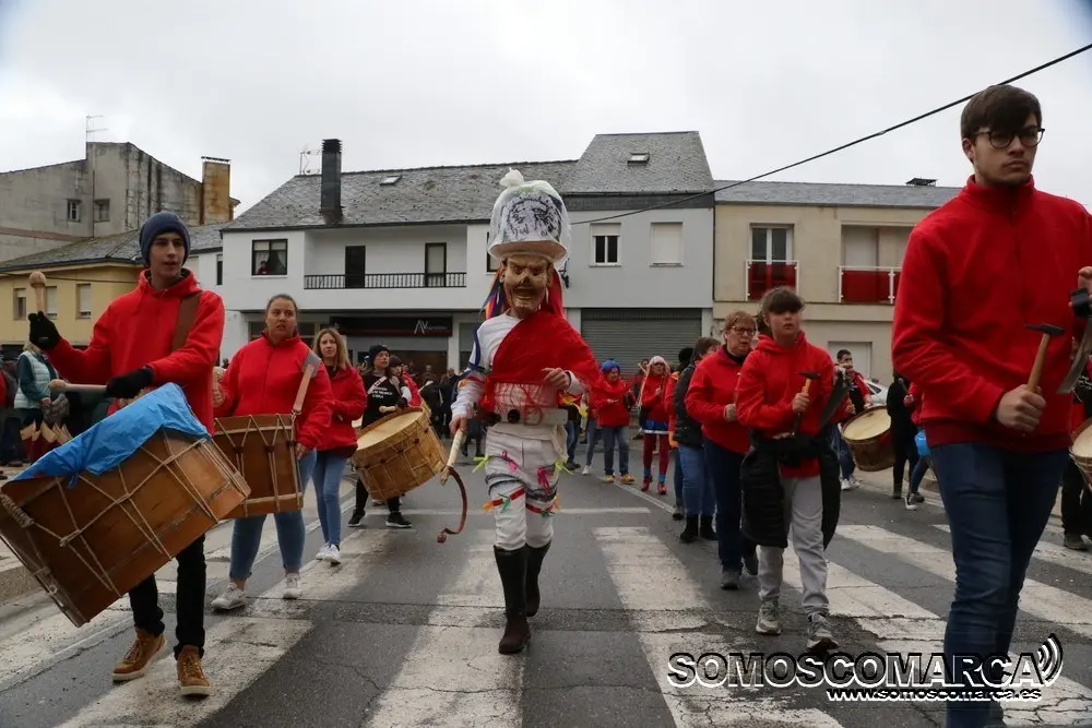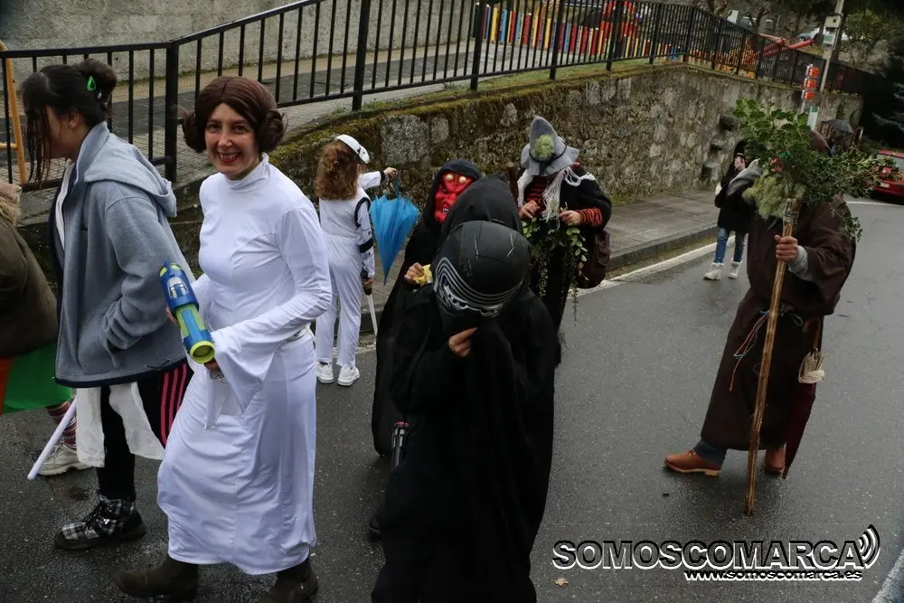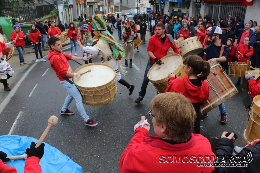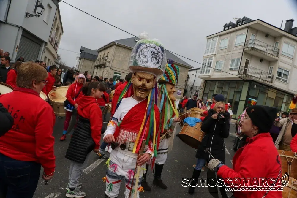 Aunque de forma intermitente la lluvia fue protagonista del desfile, eso sí, no lo deslució y los folións y comparsas recorrieron las calles del pueblo sin ningún incidente. Desde Chandrexa, Viana, A Veiga y Penouta llegaron los foliones, mientras que la Faba Loba de Trevinca fue la protagonista de 2 de las comparsas.