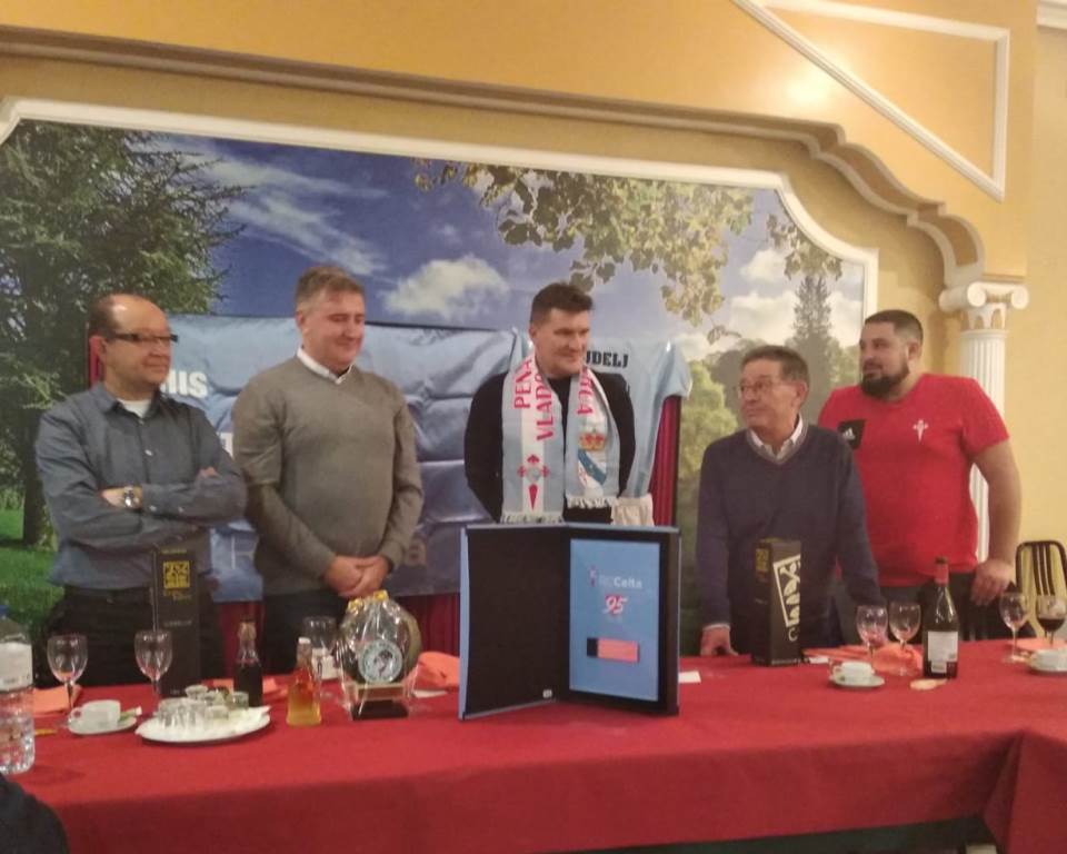 Otra de las citas con sabor celeste del fin de semana fue la celebración del 25º aniversario de la Peña Celtista Vlado Gudelj en A Rúa que contó además con la visita del jugador yugoslavo, referente histórico del club. A esa cita junto a la directiva de la peña y 33 simpatizantes, también acudió el presidente del Celta Zorka, conjunto que milita actualmente en la máxima división de baloncesto femenino en lo que fue una auténtica fiesta celeste que culminó con la victoria del equipo en la mañana del domingo ante el Huesca.