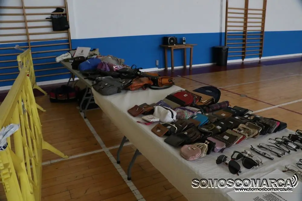 Llaves, carteras, ropa y diversos artículos se amontonan en las mesas instaladas en el Pabellón Viejo de O Barco. Entre los artículos destacan un dron, una bicicleta e incluso dispositivos tecnológicos de otra época que han sobrevivido al paso de los años en los almacenes de las dependencias policiales.