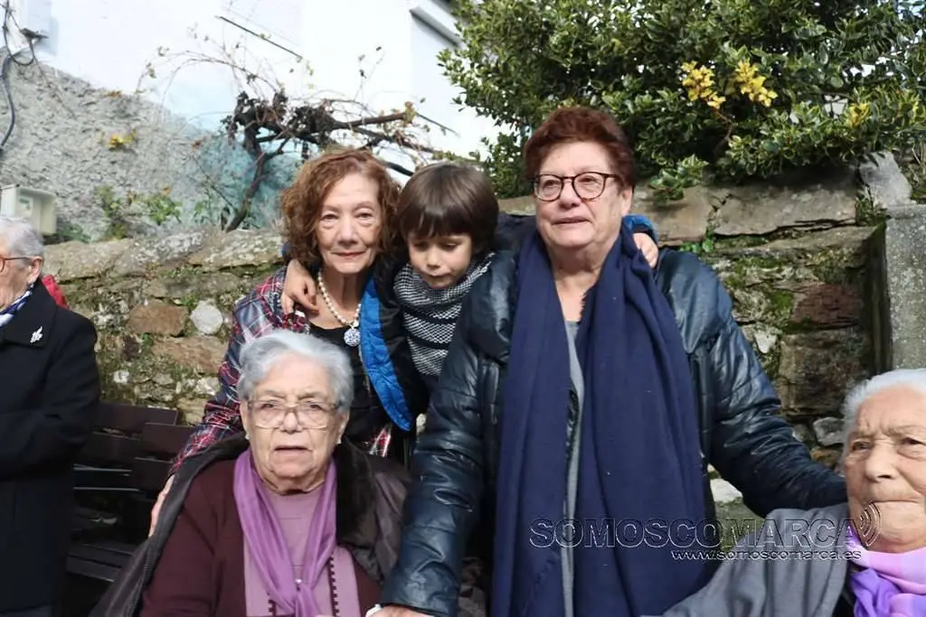 En los últimos años su falta de movilidad, —tiene que trasladarse en silla de ruedas— le impide viajar a Covas con la frecuencia que desearía. Hoy lo ha hecho a lo grande, rodeada de sus dos hijas, su dos nietos Celia y Victor y de dos de sus tres biznietos, Yago yElena. María no estuvo presente ya que tiene tan sólo cuatro meses y vive lejos, aclaró Celia, su madre.
