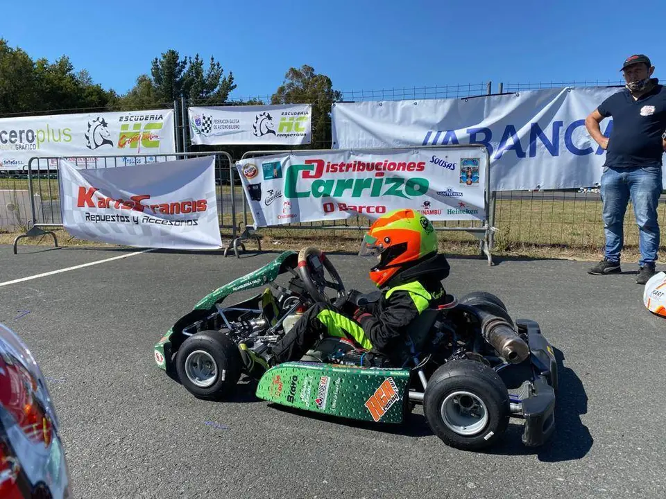 El joven barquense Leo Pérez, continúa sin bajarse de las primeras posiciones en el Campeonato Galego de Karting alevín, esta vez en las pruebas que se celebraron en el circuito de A Madalena en Forcarei (Pontevedra).