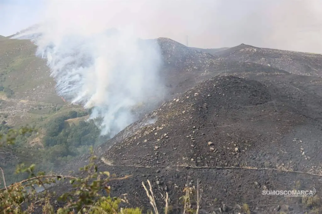 O incendio afecta nestes intres a máis de 200 hectáreas e conta con apoios aéreos chegados dende o resto de Galicia, Asturias e León