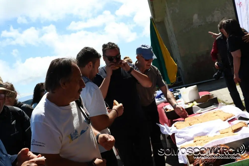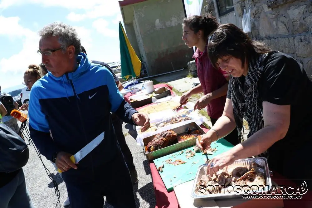 Tras a subida a veira do edificio da cafetería de Cabeza Grande os andaríns disfrutaron dunha comida onde había empanada, lacón e tamén froita para recuperar as forzas, todo elo coa música do Certáme Celtibérico de Gaitas de fondo.