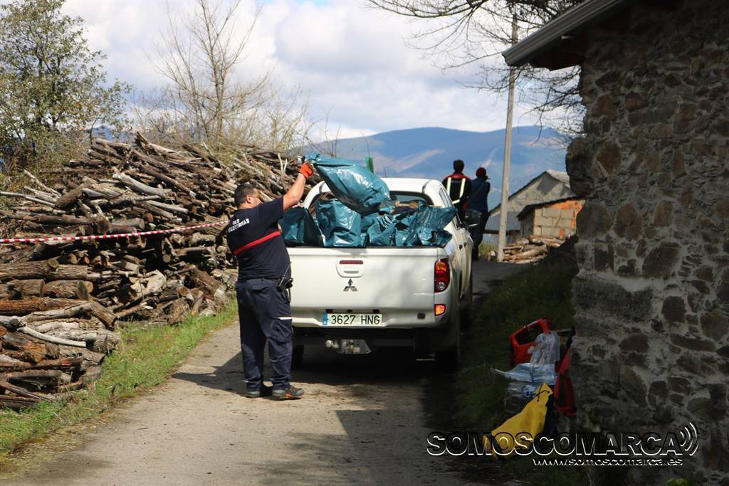 Mais de 200 sacos cheos de lixo foron transportados polos membros do GES de Valdeorras nunha pick-up ate a saída do pobo para despois ser recollida por camións. Carlos aseguraba que o lixo e de hai moito tempo, dende antes de haber contedores pero o cero é que sacaron de todo, coches de xoguete, televisores, botes e botellas ou cadeiras pero sobre todo plásticos.