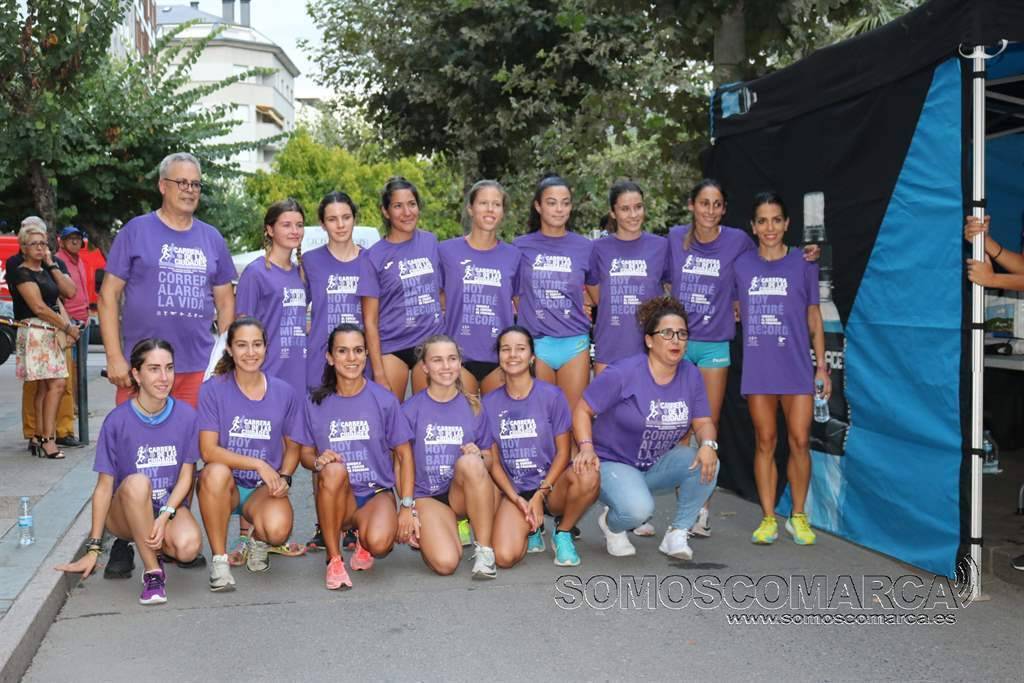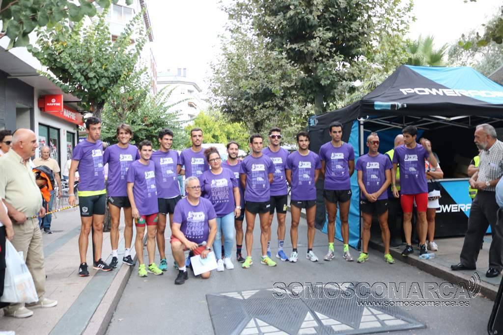Los participantes en la categoría absoluta tanto masculina como femenina hicieron su presentación y foto de grupo con la camiseta morada de la Carrera de las Ciudades.