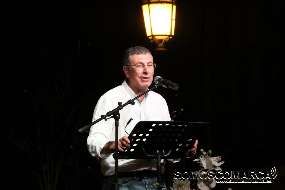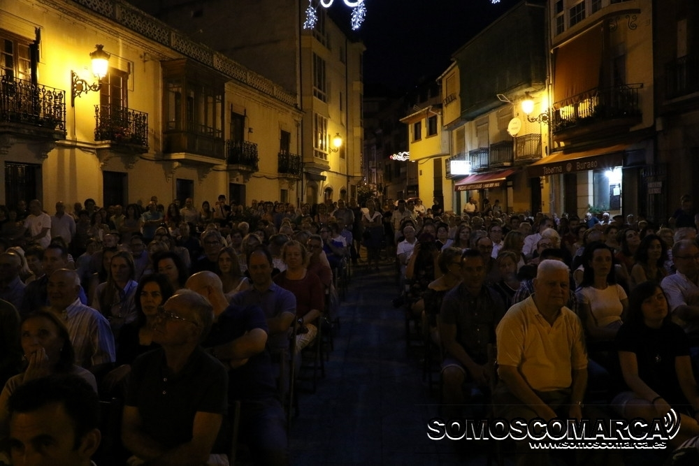 Alonso comenzó destacando que el pregonero de este año nació en A Rúa. "Porque o seu pai quería que nacera na que daquela era a capital comarcal", pero que era un barquense más, así mismo repasó aventuras del pregonero con Jose Luis Victoria en los inicios del Adas, o cuando el destino quiso llevarlo "cerca" de O Barco para dar clase: "Cos destinos provisionais coñeceu mundo, dous anos no Colexio Público da Veiga e catro anos no Manuel Respino da Rúa. No 1988 para consolidar a relación coa súa parella Yolanda a Consellería de Educación asignoulle o destino a dous pasos de aquí, en Dumbría, preto de Fisterra, deberon pensar, canto máis lonxe mellor para o amor. O destino quiso ser teimudo e a uns días de marchar para a Costa da Morte pasou a ser delegado sindical pola UXT Valdeorras".