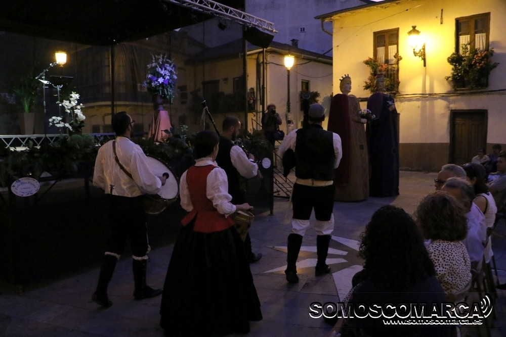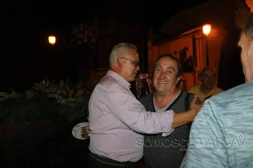 Tras el final del discurso el alcalde de O Barco, Alfredo García y la concejala de Cultura, Margarida Pizcueta, obsequiaron a Tinín con una figura de Xelo de Tremiñá (pregonero del 2018) y un ramo de flores.