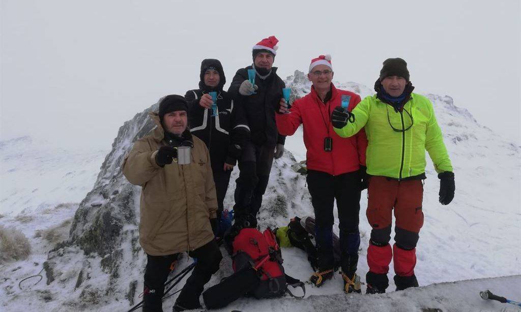 Una vez alcanzada la cima de Trevinca se unieron a ellos otros cinco chicos procedentes de la otra falda de la montaña, de Vilanova (A Veiga). Una vez colocado el Nacimiento, el brindis de los 10 montañeros que repusieron fuerzas y chocaron sus copas de cava. También se comieron la tableta de turrón que llevaban para la ocasión.