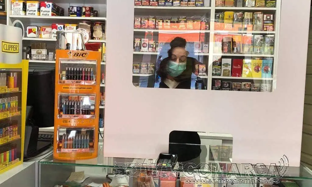 La cola en las inmediaciones del estanco se deja ver a media mañana porque además del incremento en la venta también se tienen que guardar las medidas de seguridad que no permiten que más de una persona permanezca dentro del establecimiento. Estas medidas de seguridad le han hecho instalar una mampara de metacrilato para protegerse de los clientes, que como el nos dice, la ha tenido que pagar de su bolsillo.