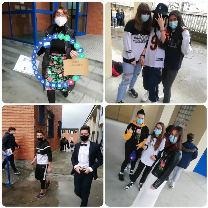 Este viernes los estudiantes del centro barquense se han disfrazado de manera libre, así hubo animadoras, futbolistas, atletas, piragüistas, algún karateca o militar, sin olvidarse de los que este 12 de febrero sacaron sus trajes de gala para una boda muy particular. También hubo quien quiso acudir como concursante del Pasapalabra, emulando a Marta y Pablo, quienes a día de hoy luchan por un bote de más de 1.000.000 de euros.
