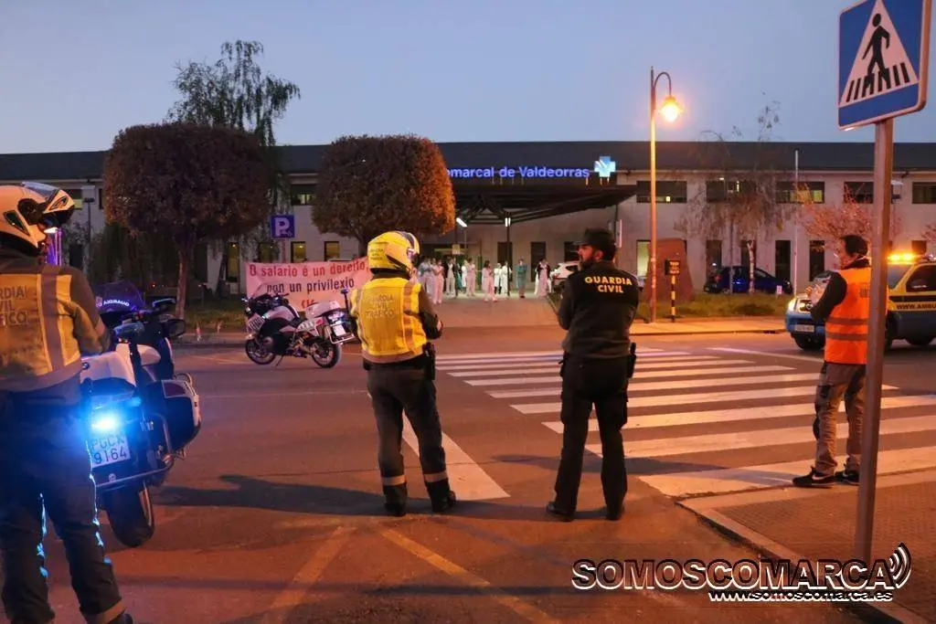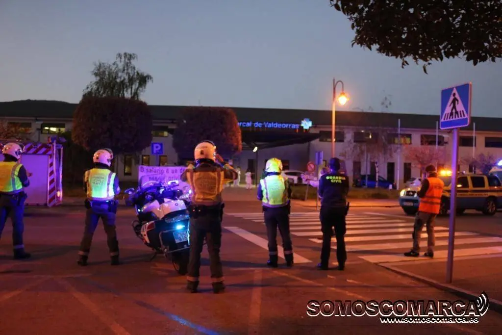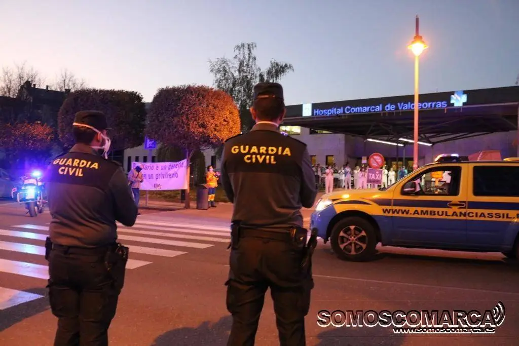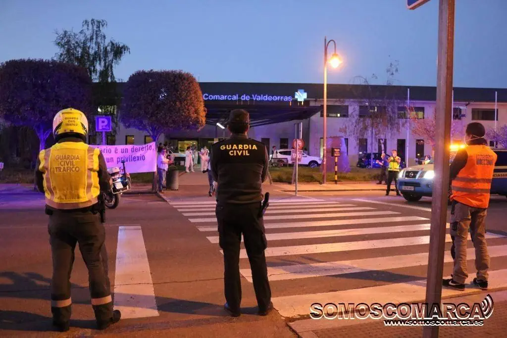Allí se detuvieron a las 20 horas, junto a los aplausos de todos los vecinos a los miembros del hospital se unieron conductores de ambulancia, y efectivos de la Policía Local de O Barco, Guardia Civil, Guardia Civil de Tráfico, Bomberos del parque comarcal de Valdeorras, GES (Grupo de Emergencias Supramunicipal de O Barco) y Protección Civil.