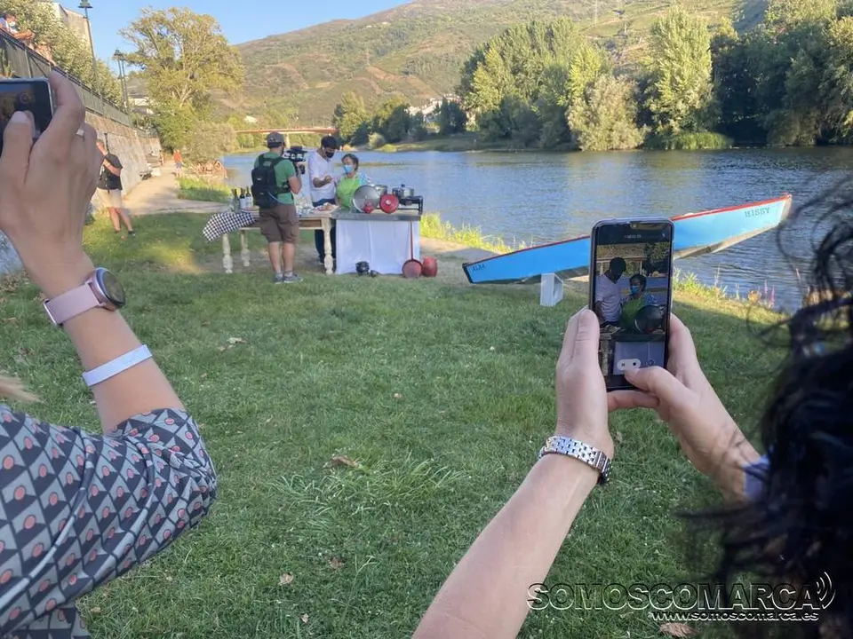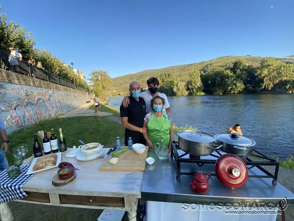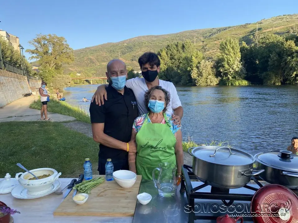 Los nervios se palpaban antes del inicio de la retrasmisión. La cocinera no estaba sola, sino que fue arropada por muchos amigos y también su hijo Richard y más familia. Antes de dar paso al directo, Sergio Fernández habló con Marisa del mundo de la cocina, acompañados por la edil de cultura del Concello do Barco, Margarida Pizcueta.