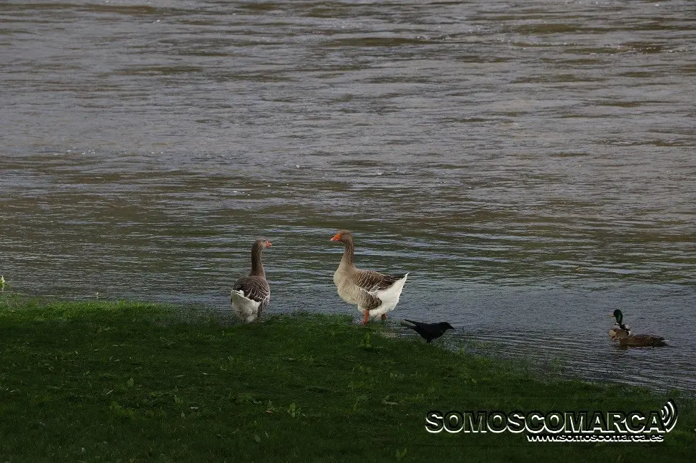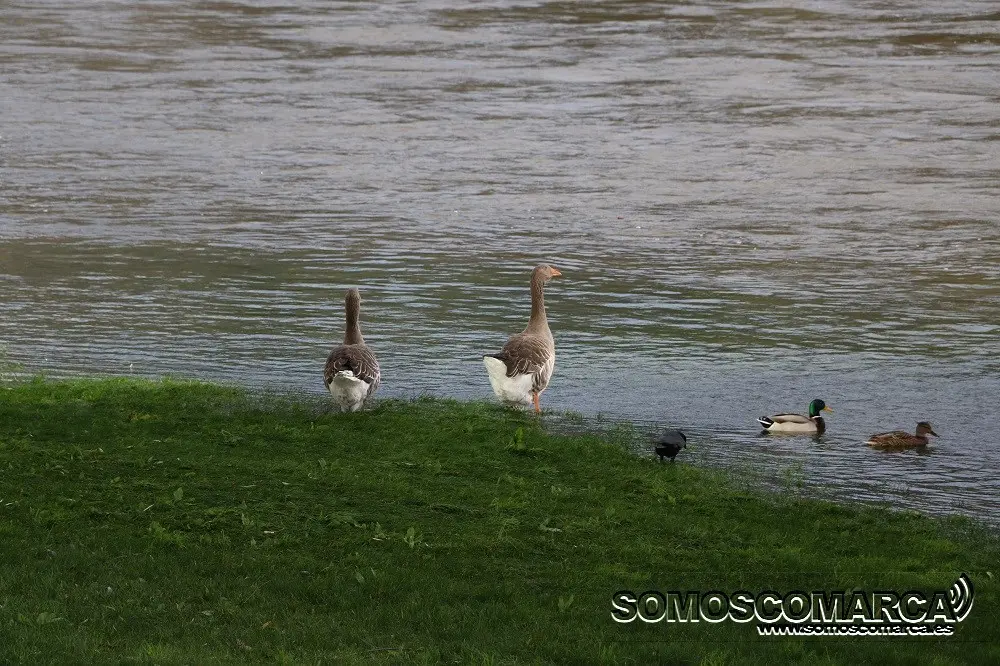 Desde hace unos días se puede ver a esta pareja unos 300 metros más abajo de la zona donde suelen estar, concretamente en la playa fluvial barquense, junto a ellos también se puede ver a decenas de patos.