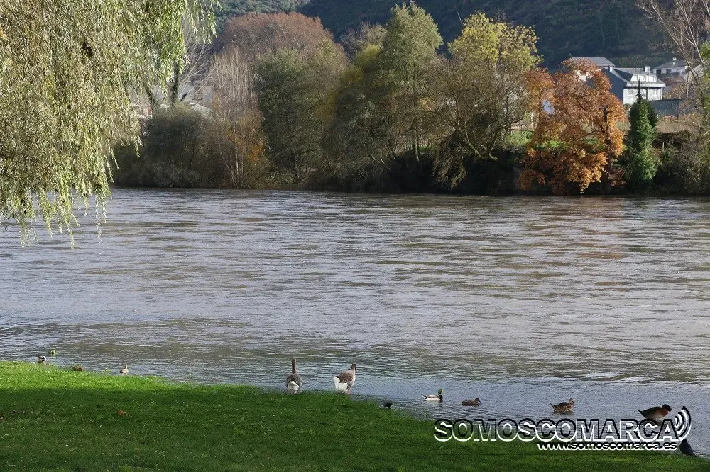 La oca y el ganso que habitualmente habitan debajo de la pasarela peatonal que conduce a Viloira han cambiado de lugar debido a la crecida del Río Sil.