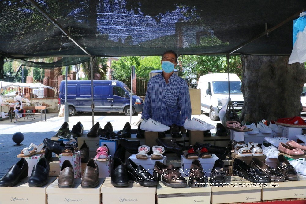 «Estamos muy contentos por poder trabajar, llevábamos mucho tiempo parados y ya lo necesitábamos. Vemos que el control y las medidas de separación están bien, nos ha sorprendido que no hay separación entre puestos, que en otros sitios si se exige pero al menos nos permiten volver» destacó Pilar, comerciante de textil que exige a sus clientes usen hidrogel y mascarilla para tocar la mercancía.