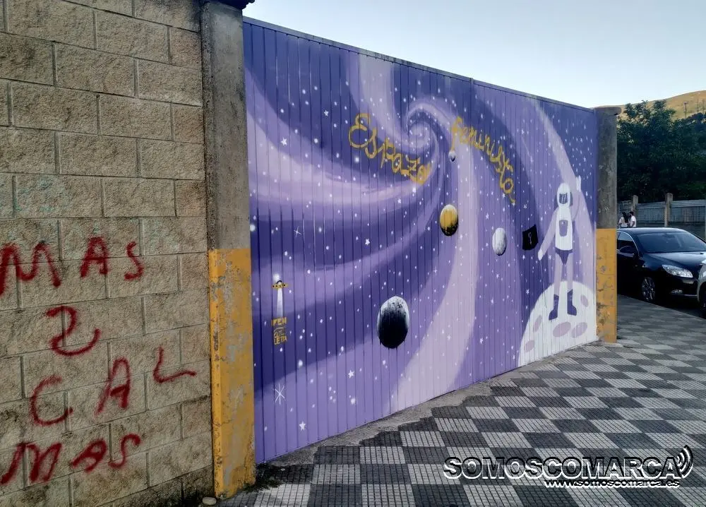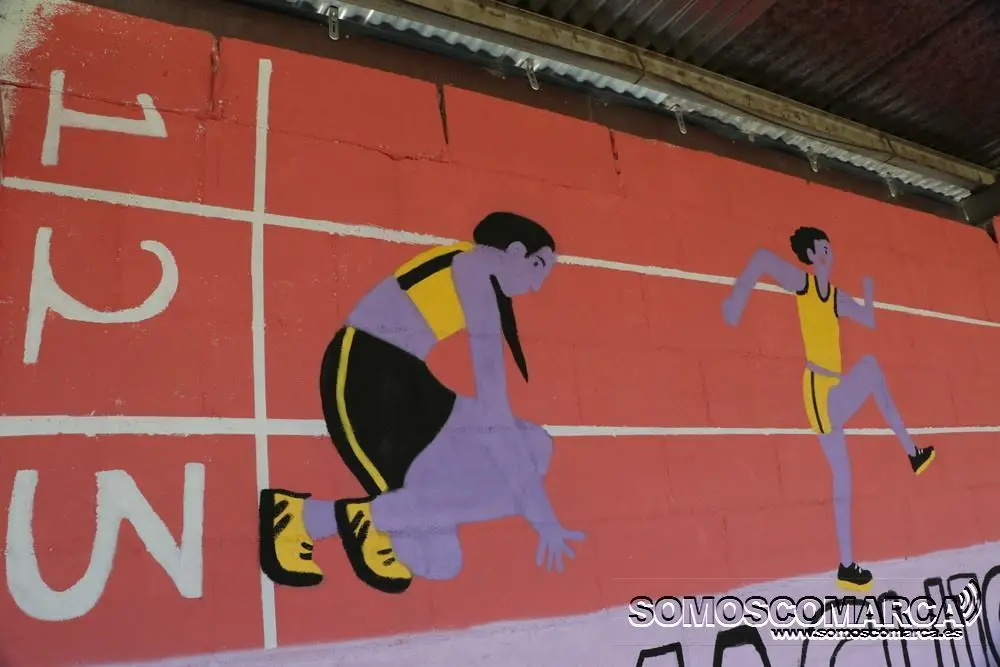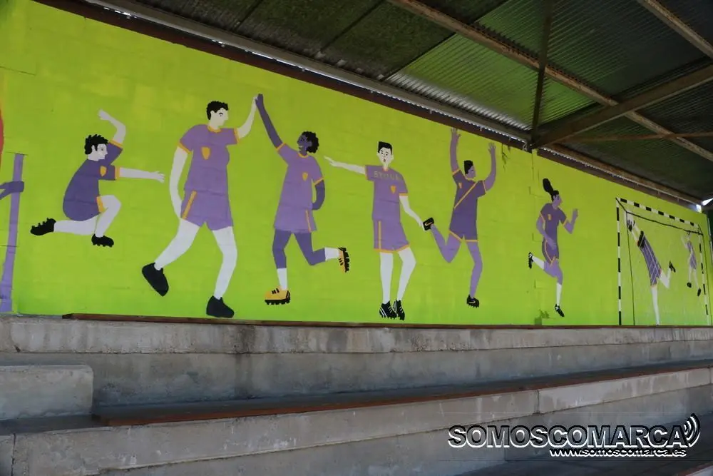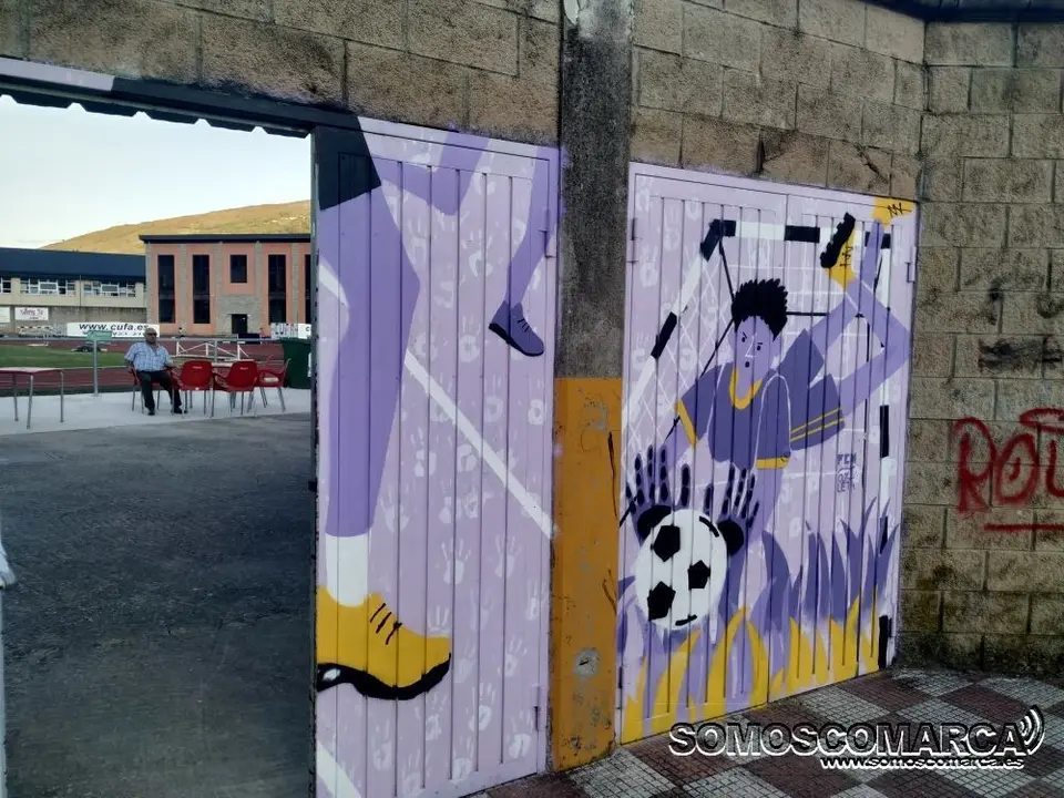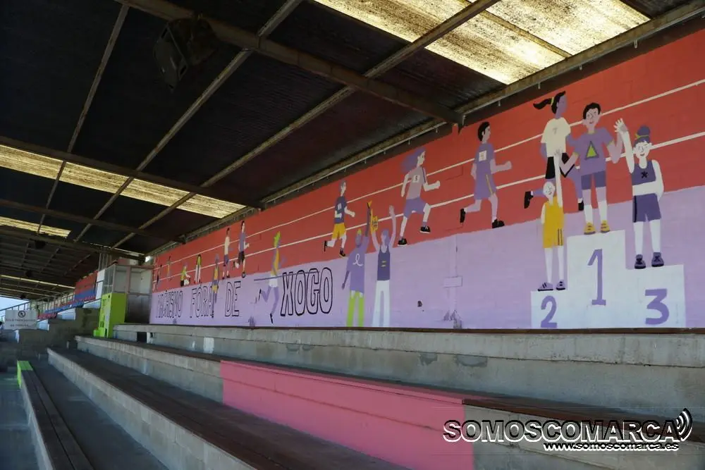 La cuarta edición del Obradoiro de Pintura Mural de O Barco llega a su recta final. El Campo de Fútbol Calabagueiros se ha convertido durante el mes de julio y agosto en los lienzos en los que expresar su arte, en esta ocasión, centrándose en la igualdad de género en el deporte.