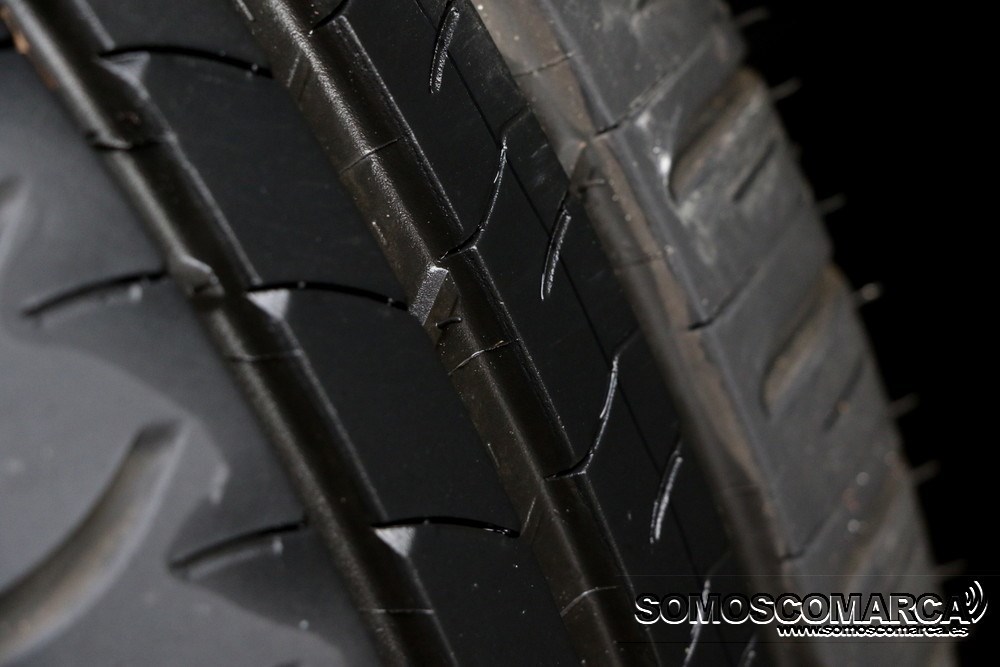 El desgaste también es un factor a tener en cuenta antes de la partida, ya que los neumáticos gastados no garantizan un buen agarre, provocando que aumente la distancia de frenado, entre otros problemas. Para saber si hay un evidente desgaste llevan unos "chivatos" que se ven a simple vista.