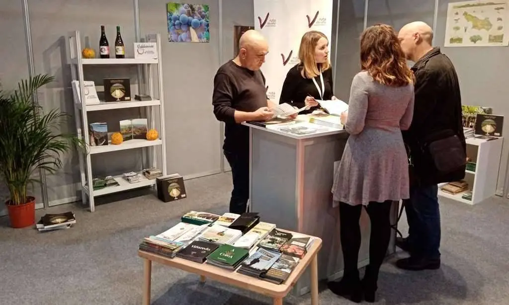 Esta es la primera vez que acude a una feria de estas características con un stand propio, en el que se informa de los asociados y se promociona la visita a las bodegas de Valdeoras. Además, se está dando a conocer el turismo de naturaleza de la comarca. El Camiño de Inverno, el Parque Natural da Serra da Enciña da Lastra o el bosque de tejos milenariosde Casaio, son algunos de los lugares que se muestran a todos los interesados que se acercan.