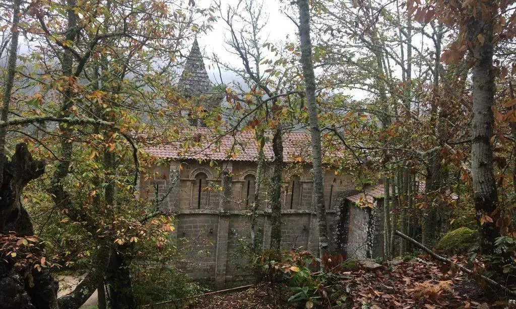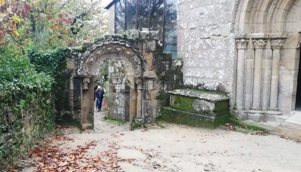 A las 9:30 horas, los participantes adultos iniciaban la marcha que les llevó por caminos de carruajes empedrados de pizarra, entre castaños centenarios y viñedos. Los ocres y amarillos del otoño acompañaron a los caminantes durante toda la ruta. Significar que en su caminar descubrieron el monasterio románico de Santa Cristina de Ribas de Sil, del cual se conserva su iglesia románica de finales del siglo XII y la portada de acceso al monasterio. Tiene una sola arquivolta decorada con grandes hojas y doble moldura geométrica. En el intradós del arco están representados los cuatro evangelistas: águila (San Juan), ángel (San Mateo), toro (San Lucas) y león (San Marcos), una auténtica maravilla.