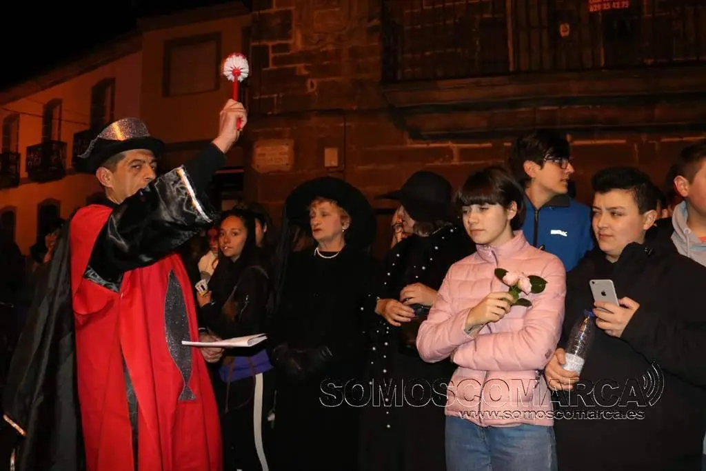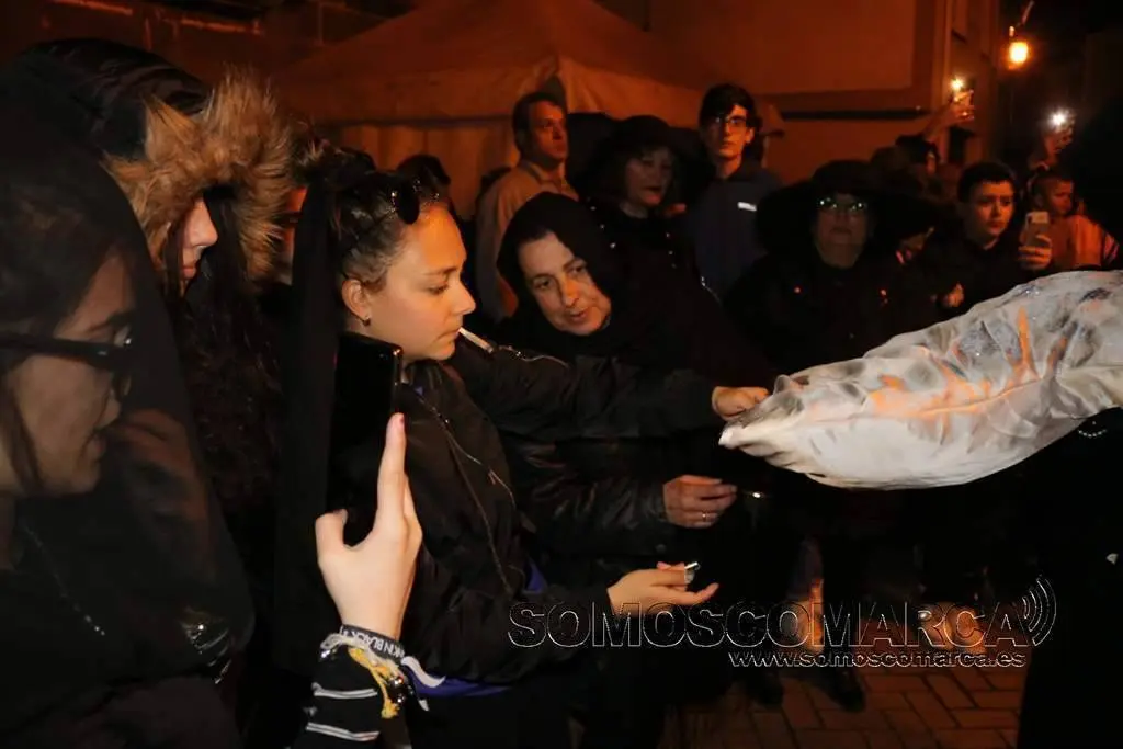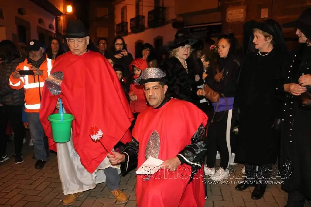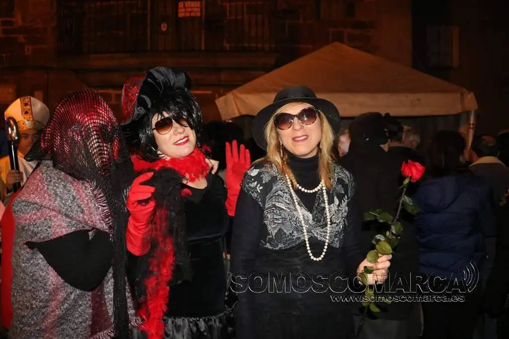 Poco después, a eso de las 20.30 horas, el cortejo fúnebre, encabezado por un sacerdote y los sacristanes partió con la sardina a cuestas para recorrer las calles del casco antiguo. La procesión hizo varias paradas donde se cantaron las letanías del Entroido y se expresó el dolor y el lamento por la pérdida de la sardina.