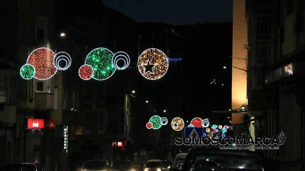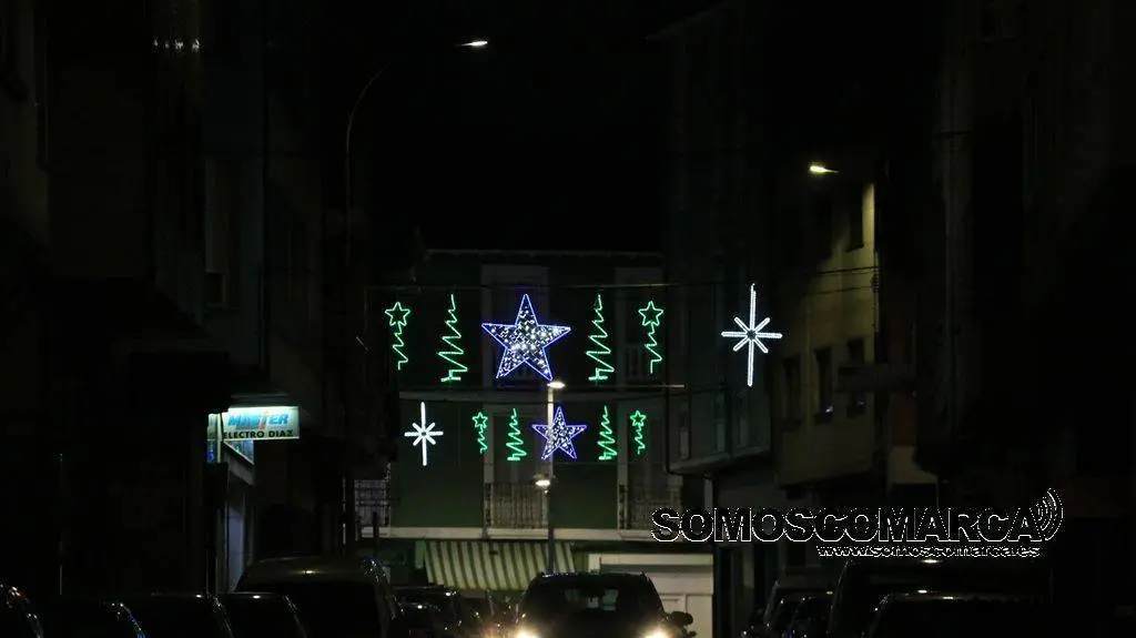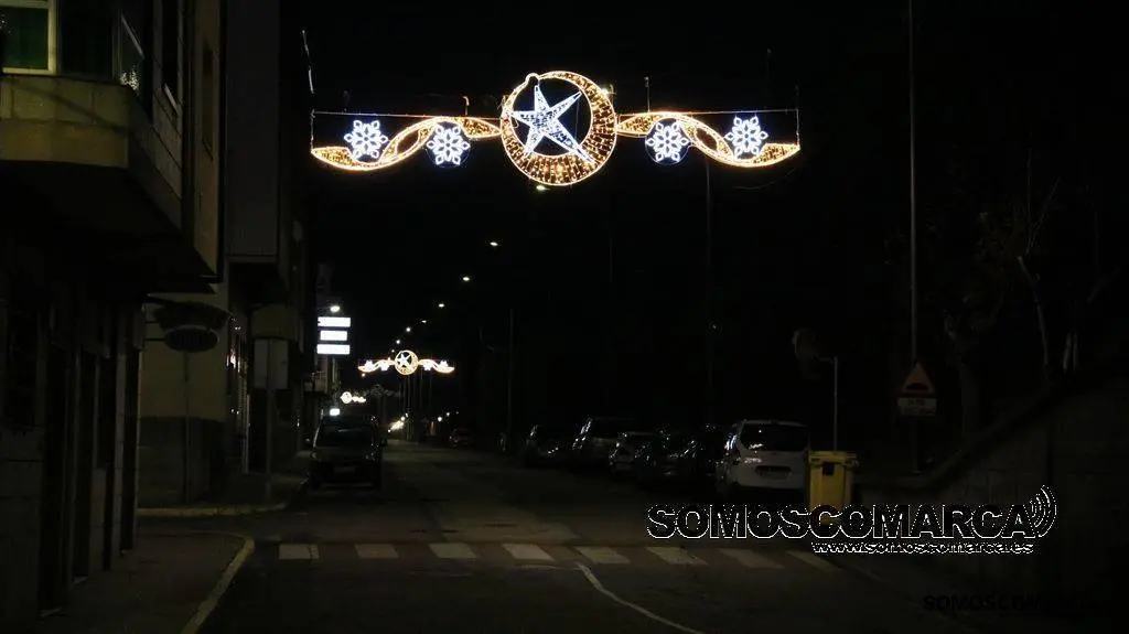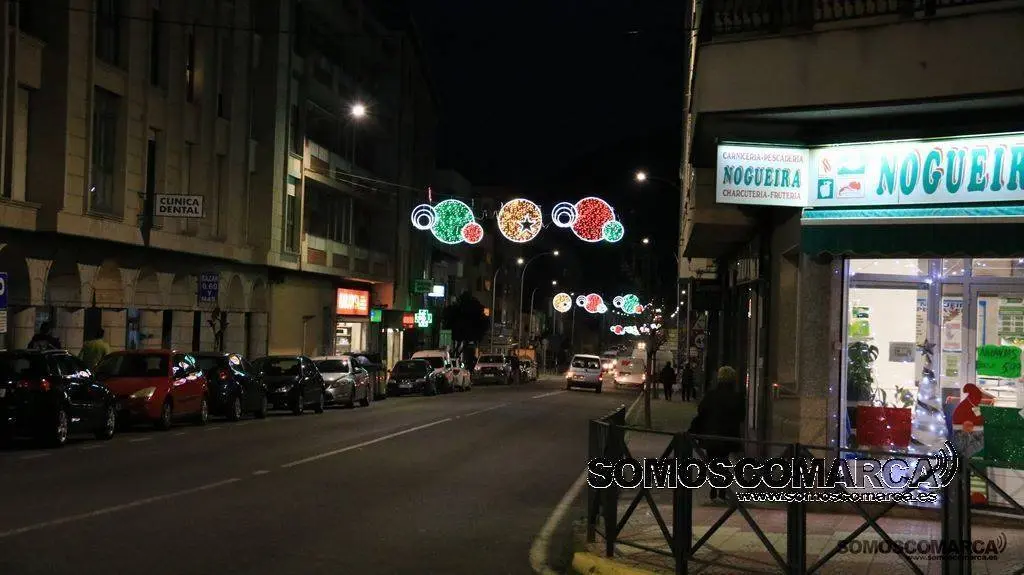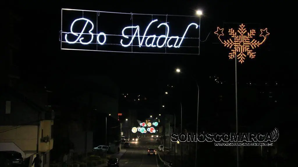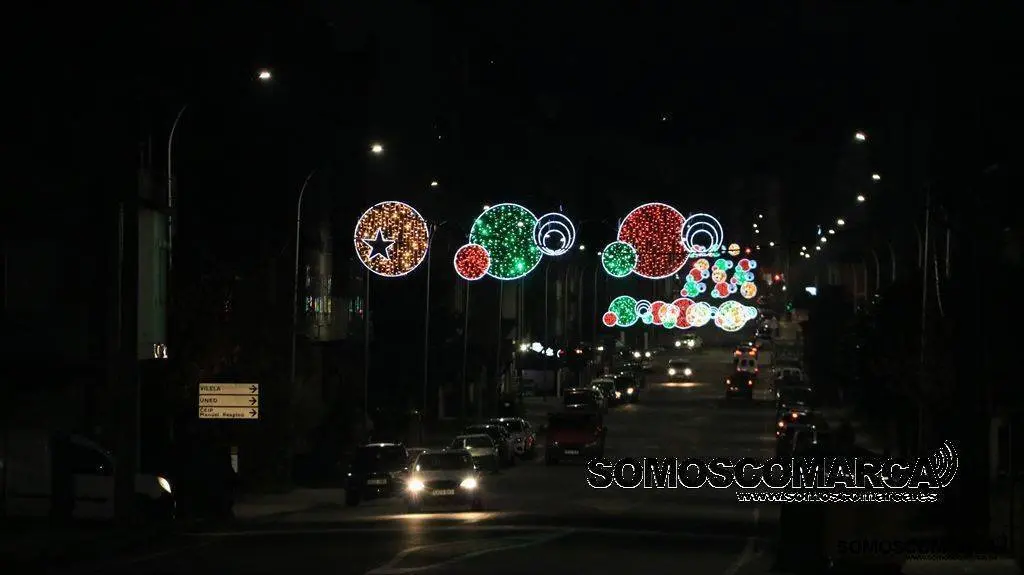 Un árbol de luz adorna la plaza del Concello, bolas de brillos rojos, dorados y verdes la calle Campograndre y Progreso, el dorado y blanco fue el elegido para alumbrar Circunvalación y plaza de Galicia. La bajada a la estación por Dr. Vila y la calle Miguel de Cervantes se Iluminaron con el blanco reflejo de los copos de nieve y el azul de las estrellas y Benito Fernández y Silveira con el verde de los abetos.