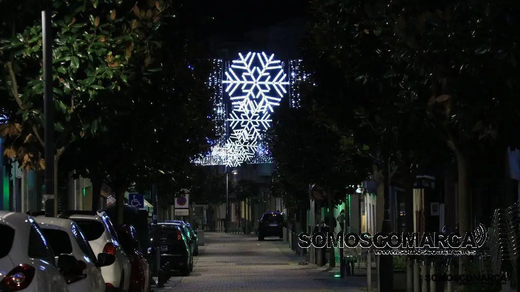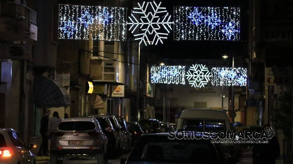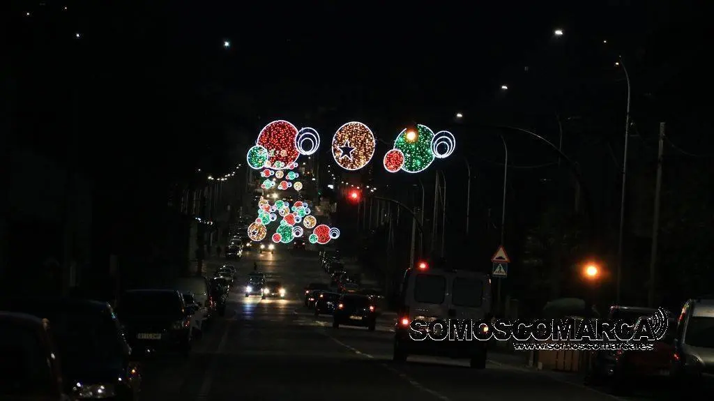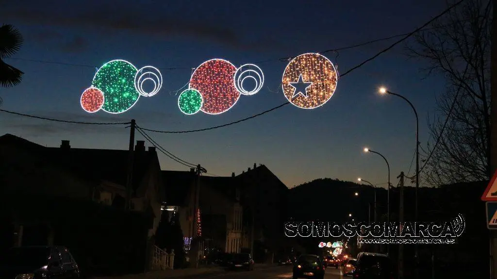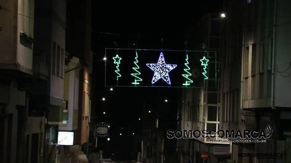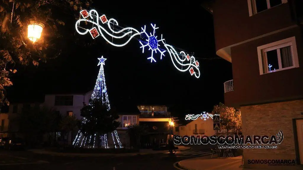 Un árbol de luz adorna la plaza del Concello, bolas de brillos rojos, dorados y verdes la calle Campograndre y Progreso, el dorado y blanco fue el elegido para alumbrar Circunvalación y plaza de Galicia. La bajada a la estación por Dr. Vila y la calle Miguel de Cervantes se Iluminaron con el blanco reflejo de los copos de nieve y el azul de las estrellas y Benito Fernández y Silveira con el verde de los abetos.