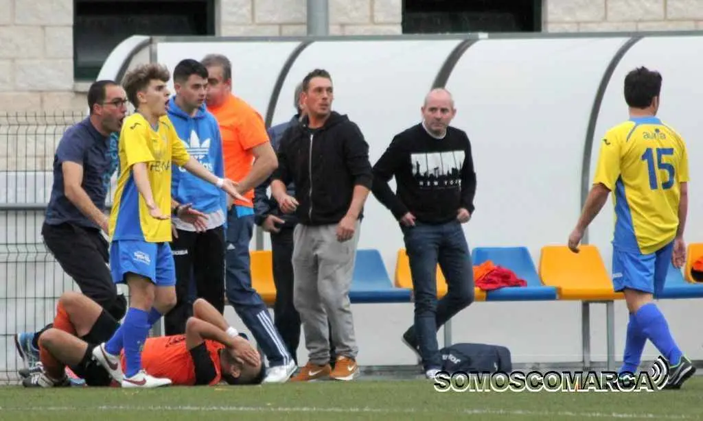 Tarjetas: Diego Lora, Dani Martínez y al entrenador Ferrer por parte del Rúa, expulsó a Juan. Javi, Óscar y David por el Caldelao.
