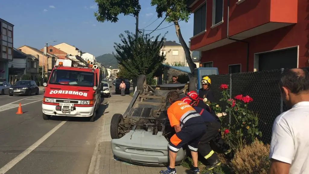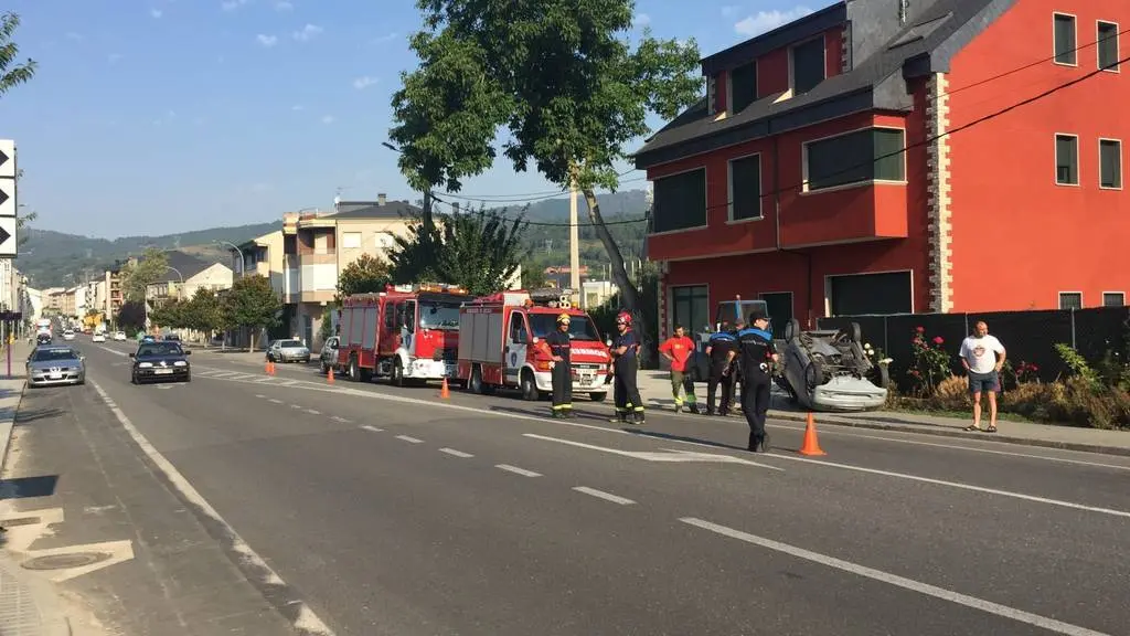 Una ambulancia impactó contra la parte de atrás de un coche sin carnet. El vehículo volcó y, aunque al lugar de los hechos se trasladaron dos camiones de bomberos, el conductor salió por su propios pie. Sufrió solo rasguños pero fue trasladado al Hospital Comarcal de Valdeorras.
