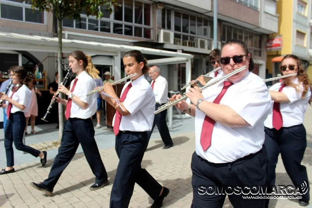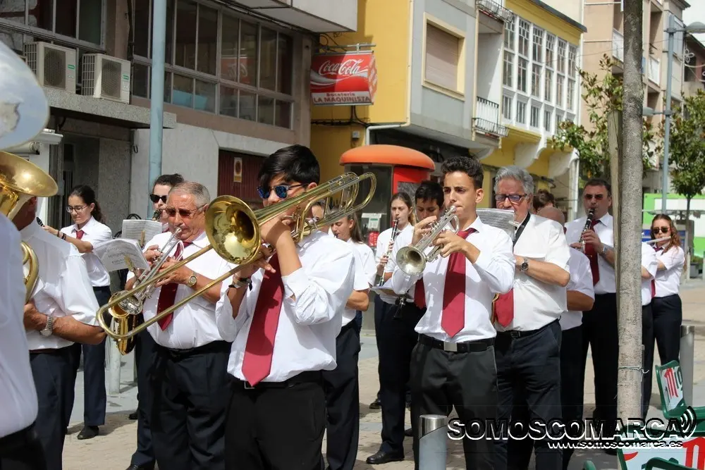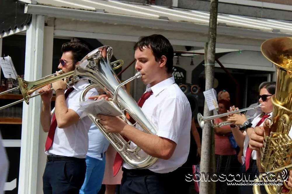 Llegados desde el barrio de Bergondo (Noia) donde tiene la sede la banda, nada más parar a A Rúa -en torno a las 12 de la mañana- apenas tuvieron tiempo para descansar tras un trayecto de 250 kilómetros, y comenzaron a actuar bajo el intenso sol por todas las calles de la localidad valdeorresa comenzando en la Rúa Doctor Vila, a pies de la estación de tren y pasando por todas las calles del casco urbano.