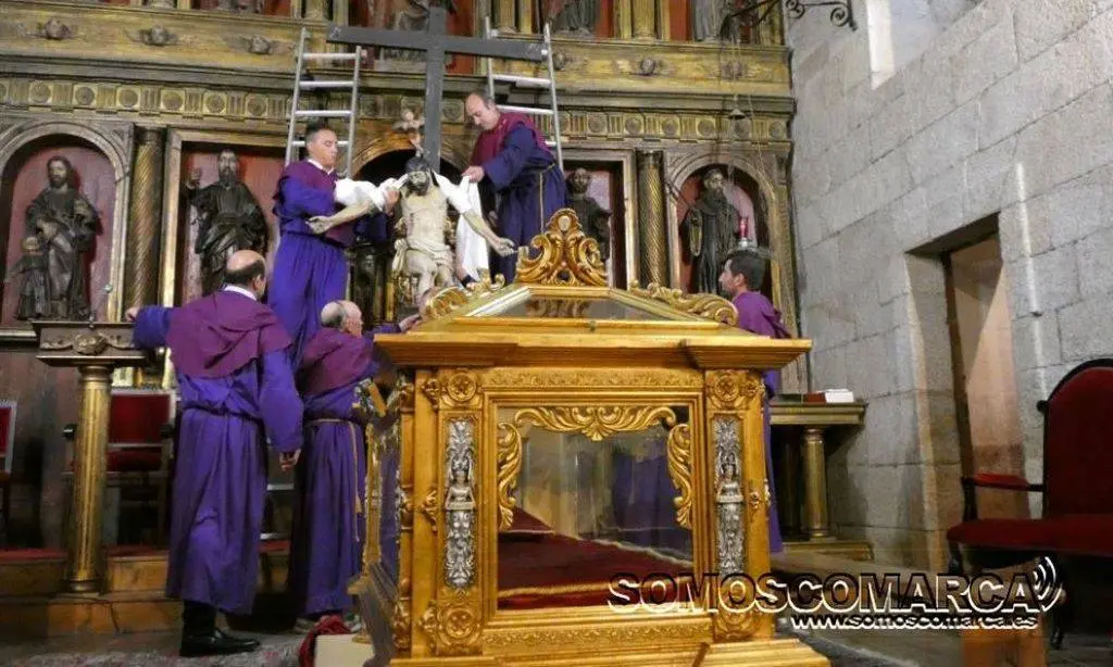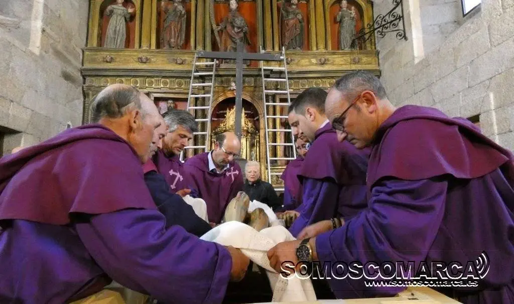 Martín González Nogueira es uno de los vecinos que participa desde hace 36 años en el desenclavo. Lo hace por devoción. «Bajamos de la cruz aCristo varios hombres del pueblo. La tradición es así. Es muy bonita. En cada lugar se hace de una forma, pero en A Rúa Vella es muy especial, realmente emotiva», argumenta.