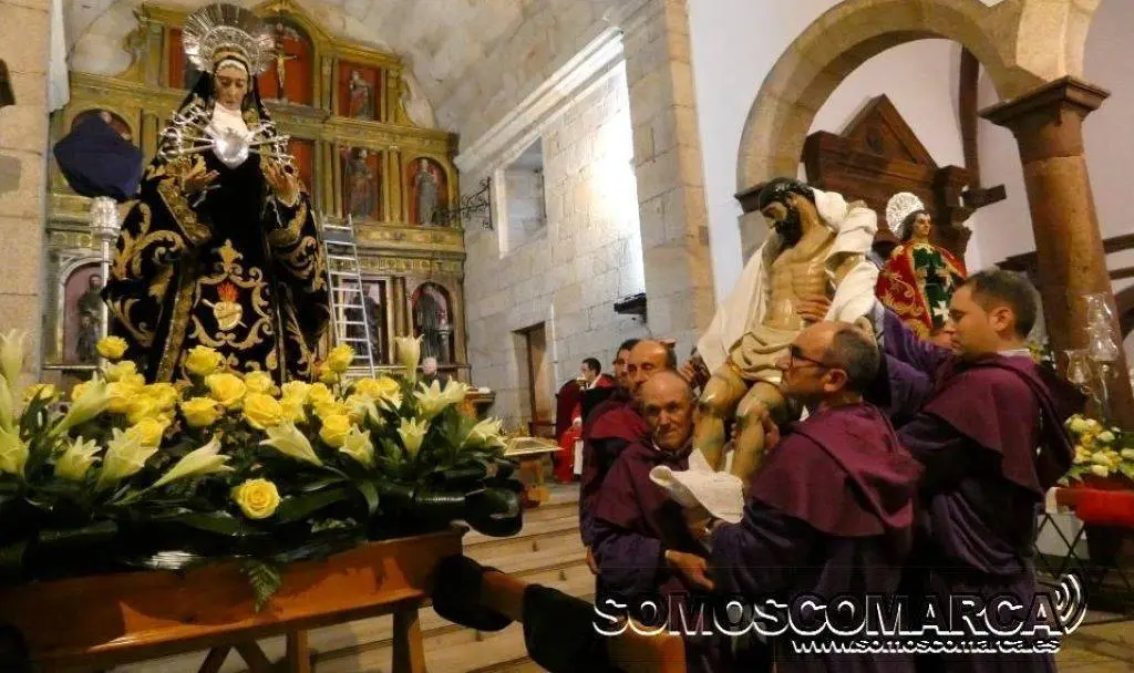Los hombres hicieron descender a Cristo para meterlo en una urna de cristal y las mujeres vistieron de negro riguroso para acompañar a la «Dolorosa»
