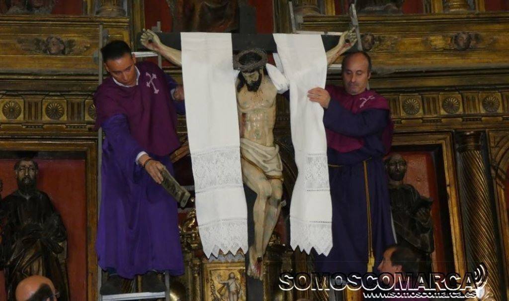 El «desenclavo» volvió a escenificarse rodeado de un gran sentimiento religioso entre las numerosas personas que se acercaron a presenciarlo.