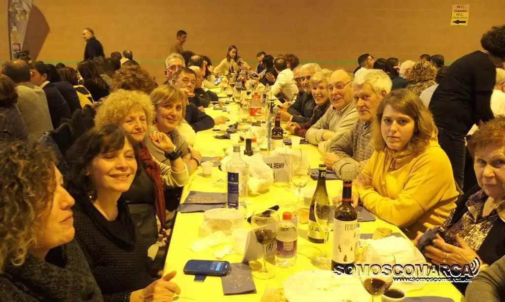 Tra-las homenaxes, a alcaldesa convidou a todos a dirixirse ao pavillón, onde comezaba a comida popular. Os 850 comensais degustaron máis de 1200 metades de codillo, acompañadas de chourizo, patacas, verdura e, como non, un viño pingadelo da Bodega Cooperativa de A Rúa Virxe das Viñas.