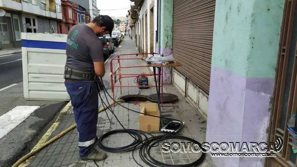 La red de cables se despliega en la travesía principal, desde la calle Progreso hasta casi el límite con el municipio de Vilamartín. Rubén Nogales, oficial de Allartel, empresa que ejecuta los trabajos, explica que una vez finalizada la citada zona, se «acometerán otras actuaciones, por manzanas».