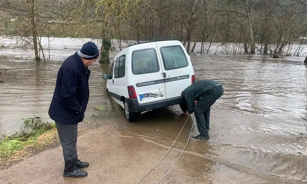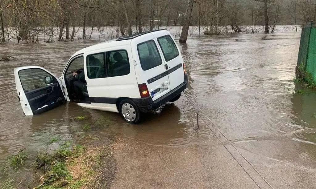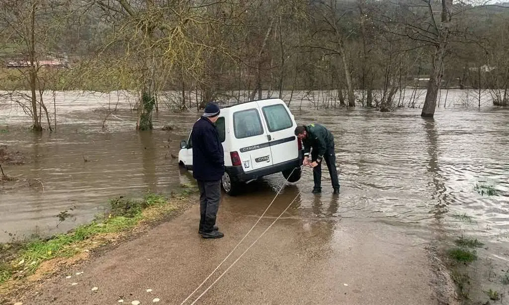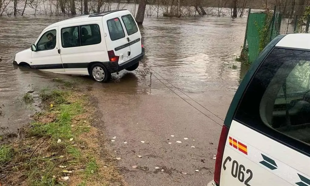 Un hombre que se acercó hasta las inmediaciones del Sil para contemplar la riada, desde su vehículo, tuvo que ser rescatado por la Guardia Civil de A Rúa.