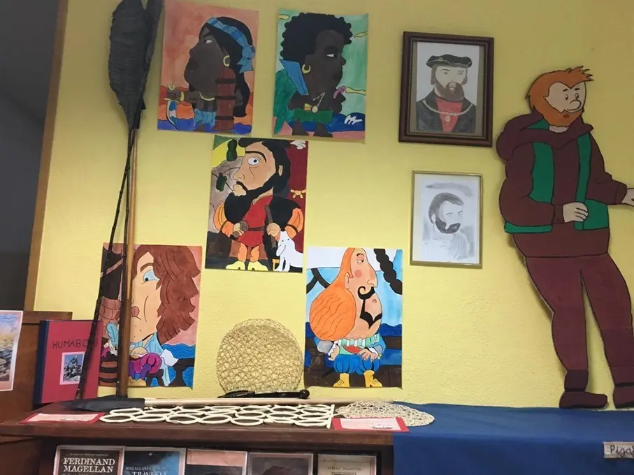 Los alumnos y alumnas del centro también se han implicado en esta celebración tan singular, además de acudiendo disfrazados de cada personaje, aportando su granito de arena a la exposición. Y así, Carla Pérez ha replicado la despensa de un barco. Emilio Pardo, profesor del colegio, ha realizado otra réplica de la Nao Victoria para la ocasión.