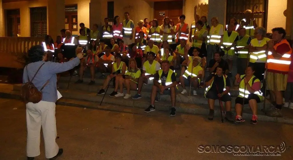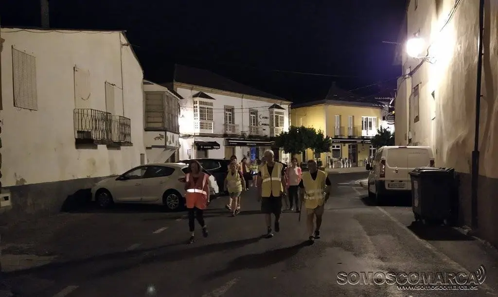 Provistos de linternas, mochilas y chalecos reflectantes, la marcha partió de la Praza do Concello, después de que la presidenta del colectivo, Asunción Arias, hiciese recuento de los participantes. Ella misma fue la persona encargada de hacer el servicio de «coche escoba» por si a algún andarín le fallaban las piernas.