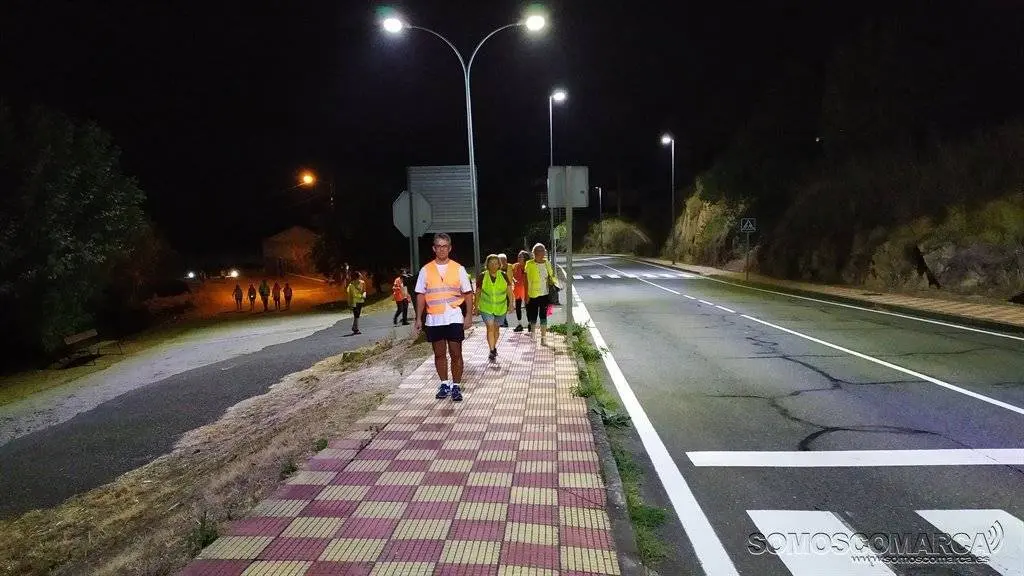 La oscuridad acompasó la ruta, rota tan solo por la tenue luz de las linternas, la charla entre los caminantes y las estampas que deparó el paisaje nocturno.