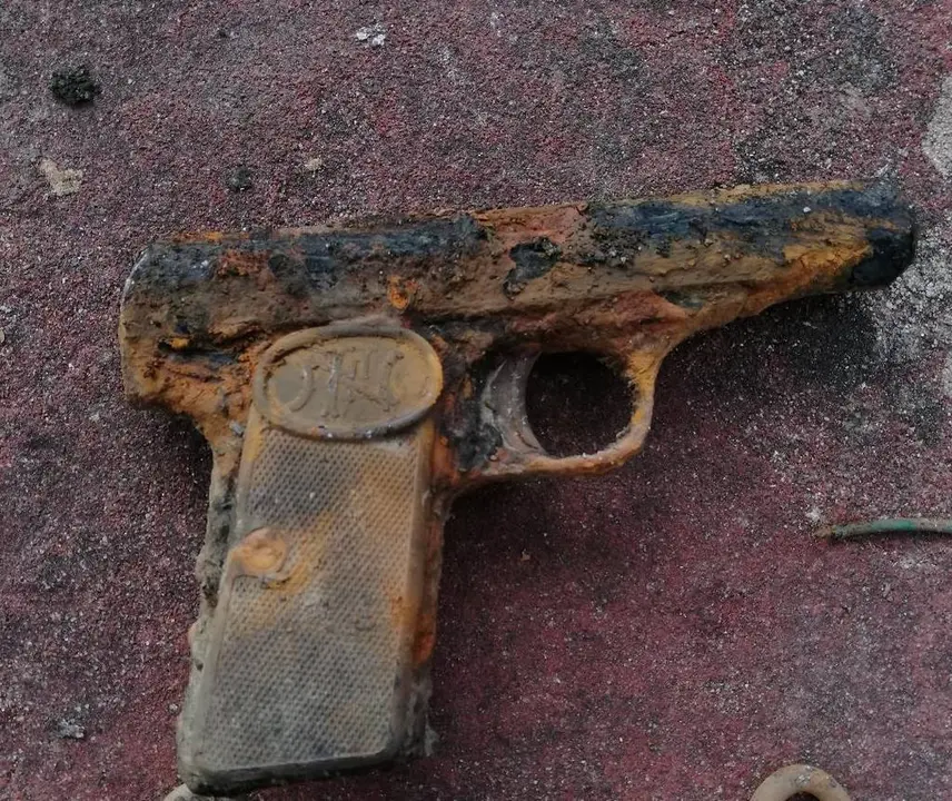 Fue entonces cuando decidieron ponerse a indagar en Internet. A pesar del desgaste por el tiempo que ha podido pasar debajo del agua, se distinguía la marca. «Es una FN 1910, que es el año en el que se empezó a crear». Acto seguido llamaron a la Guardia Civil «y la verdad es que también alucinaron. Nos dijeron que estaba cargada y tenía una bala en la recámara, por lo que era peligroso. Podía explotar».