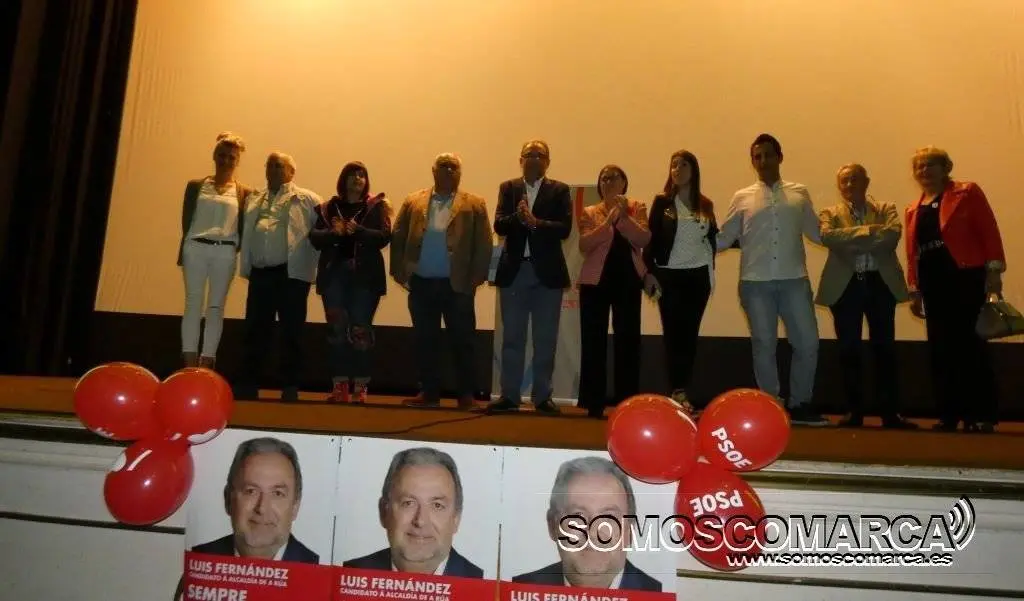 El candidato del PSOE a la Alcaldía de A Rúa, Luis Fernández Gudiña, presentó su programa electoral en un acto en el que intervinieron Ana Fernández Vizcaya, miembro de la lista, Pepe Blanco López, diputado en el Parlamento Europeo y Noela Blanco Rodríguez, diputada en el Parlamento gallego. El mítin se inició con un minuto de silencio por la muerte de José Couso, ex presidente del CD Rúa que fue trabajador del Ayuntamiento. Fue comunicada a los asistentes por Ana Fernández Vizcaya.
