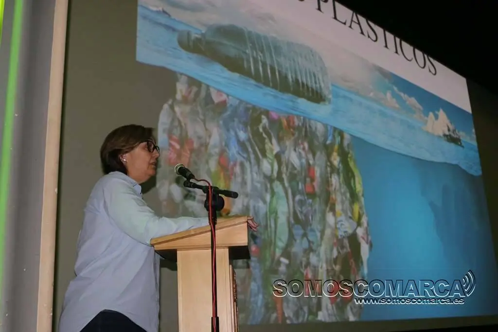 María Jesús Fernández Maseda —«Cutús»— , profesora de biología, fue la persona encargada de pronunciar la charla, en la que invitó a declarar la «guerra» al plástico por el daño que causa en el medio ambiente, en el planctón marino, en los animales, peces y las personas. Y es plásticos y microplásticos están muy presentes en la cadena trófica. Tal y como «rezó» el título de la ponencia, «comemos, bebemos y respiramos plástico».