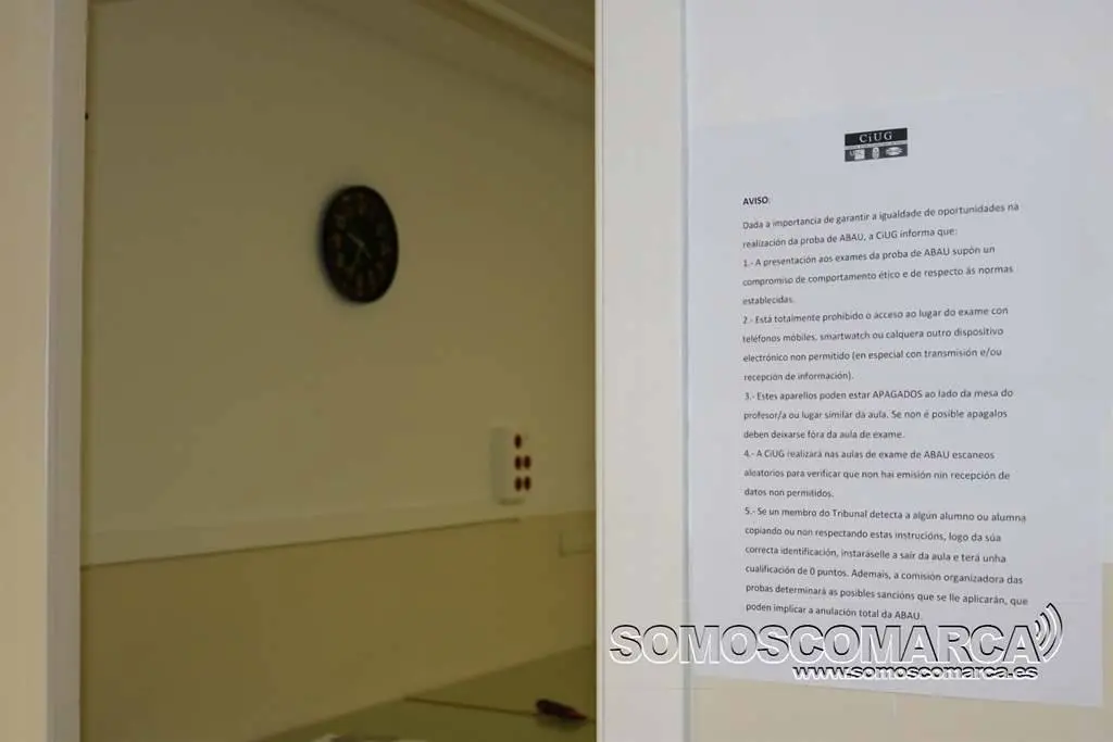 As probas de acceso celebraranse durante tres días —mércores, xoves e venres— e determinarán, xunto coa media do expediente, se o alumno pode acceder ó grao que desexa. Este ano a CIUG — Comisión Interuniversitaria de Galicia—, organizadora da proba, realizará escaneos e controis aleatorios para garantir a igualdade de oportunidades e asegurarse que non haxa fraudes nin trampas. Neste tema fixo especial fincapé o presidente á hora de dar as instrucións antes de comezar a proba esta mañá na Rúa.