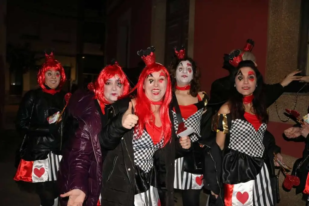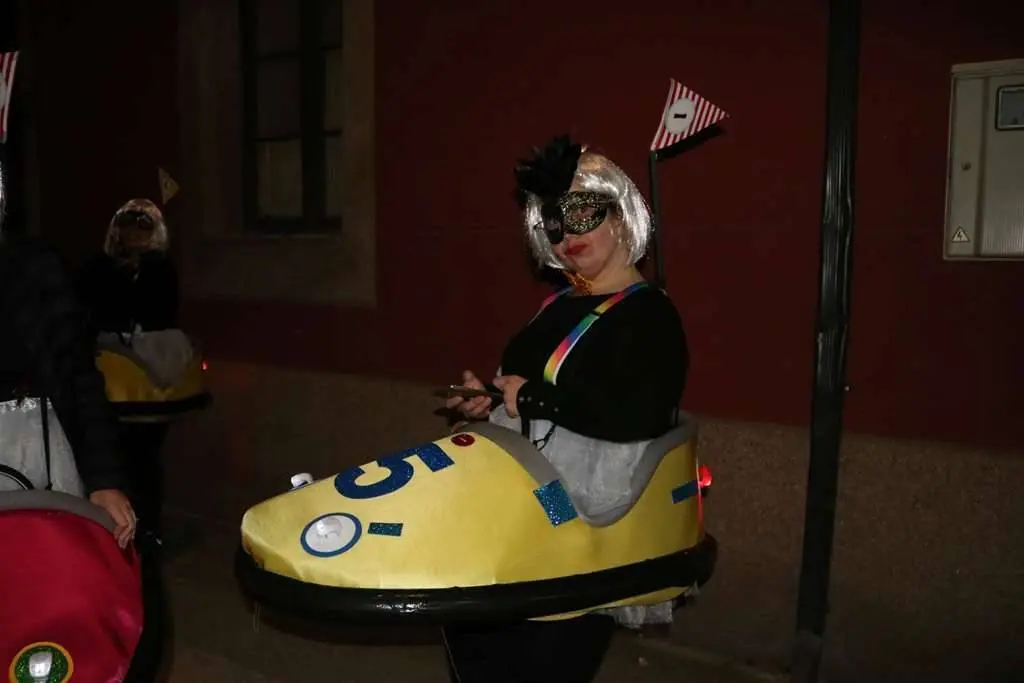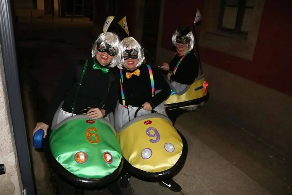 Coches de choque, gardas urbanos que dirixían o tráfico, nubes de tormenta, raínas de corazóns, unicornios, indias, sevillanas, abellas, velutinas, piratas, e até un jocker moi particular. Rapeiros, exipcias, indias, moras, wallys, vampiresas, cleopatras, paiasas, cíngaras, curas, bispos, monxas, porquiñas Peggy, froitas, clow, sambeiras, corsarias, bruxas....