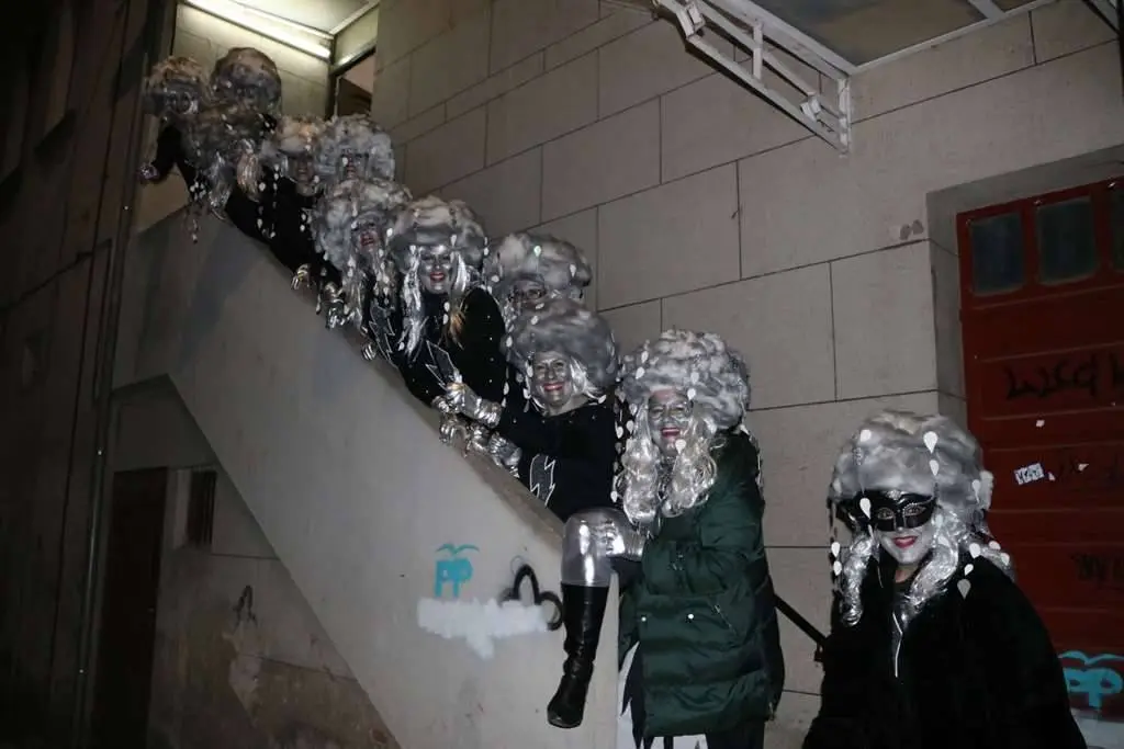 Moitos disfraces e algúns moi orixinais e ben traballados. Moi boas ideas con brillantes cores para a noite que da o pistoletazo de saída ó Entroido. Despois da cea de comadres baile e troula até ben entrada a madrugada.