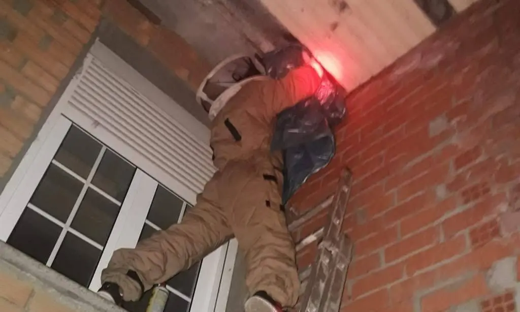Ademais destas labores, os membros de Protección Civil da Rúa, tamén se ocupan de eliminar os niños de vespas velutinas. O pasado sábado acudiron ó lugar de O Pacio en Vilela ( A Rúa), ben entrada a noite, iso si, para eliminar un destes niños. A noite e a mellor hora para desfacerse destes insectos himenópteros xa que é cando están todas no niño. Un feito curioso é que utilizan unha luz vermella debido a que as avespas non captan esta cor. Xa van máis de catro intervencións deste tipo os que leva feito este voluntariado na mesma zona da Rúa en menos dun mes.