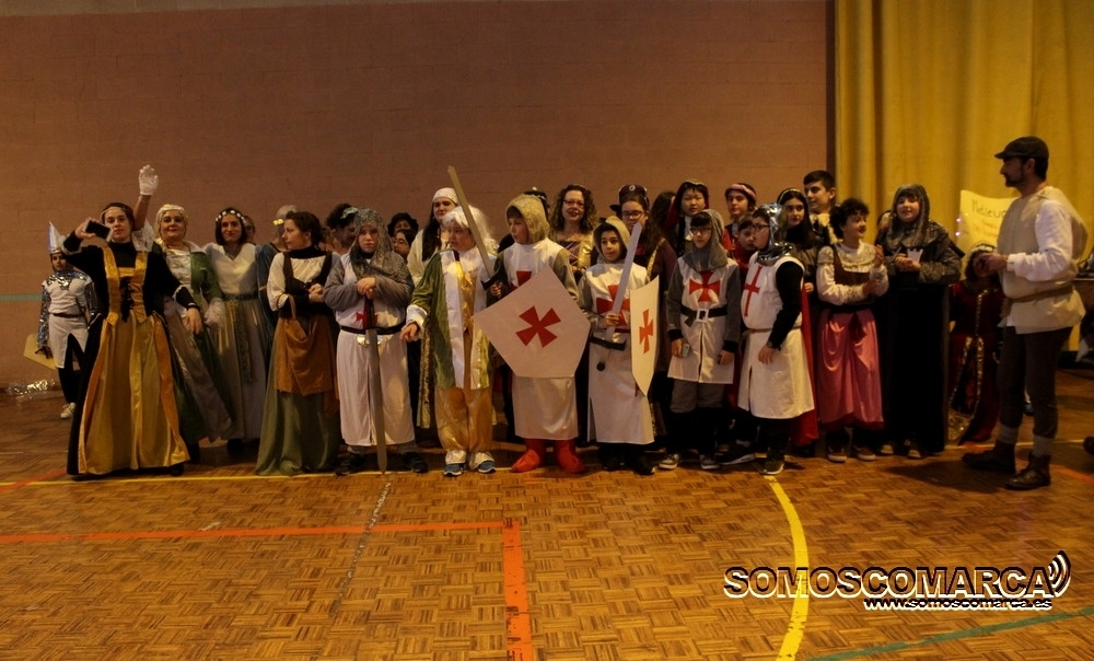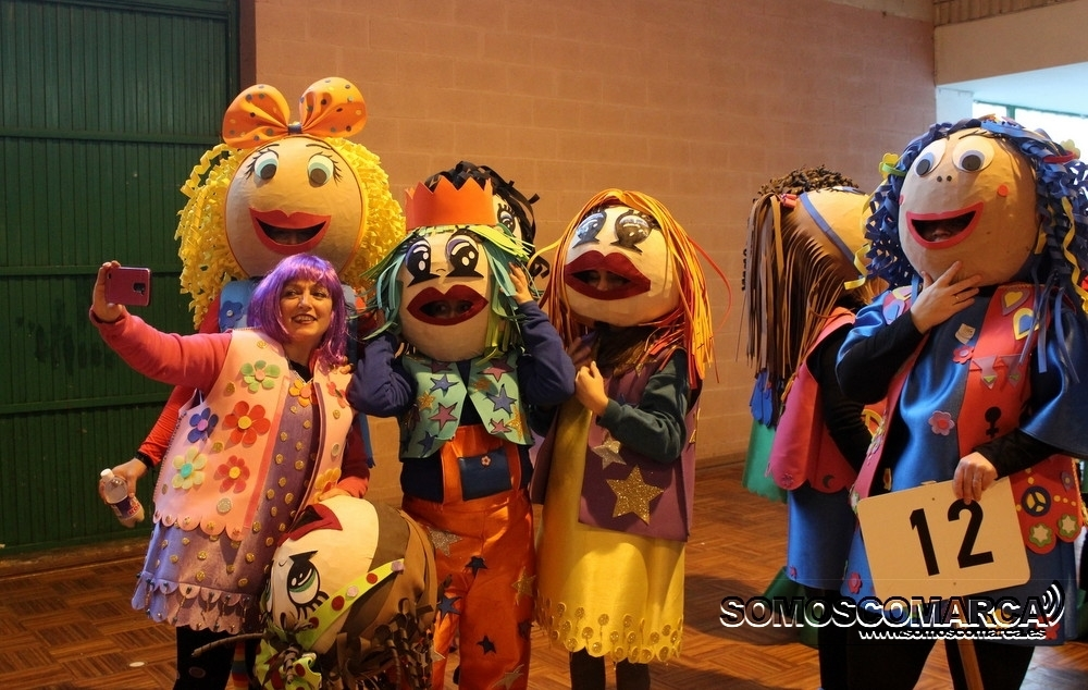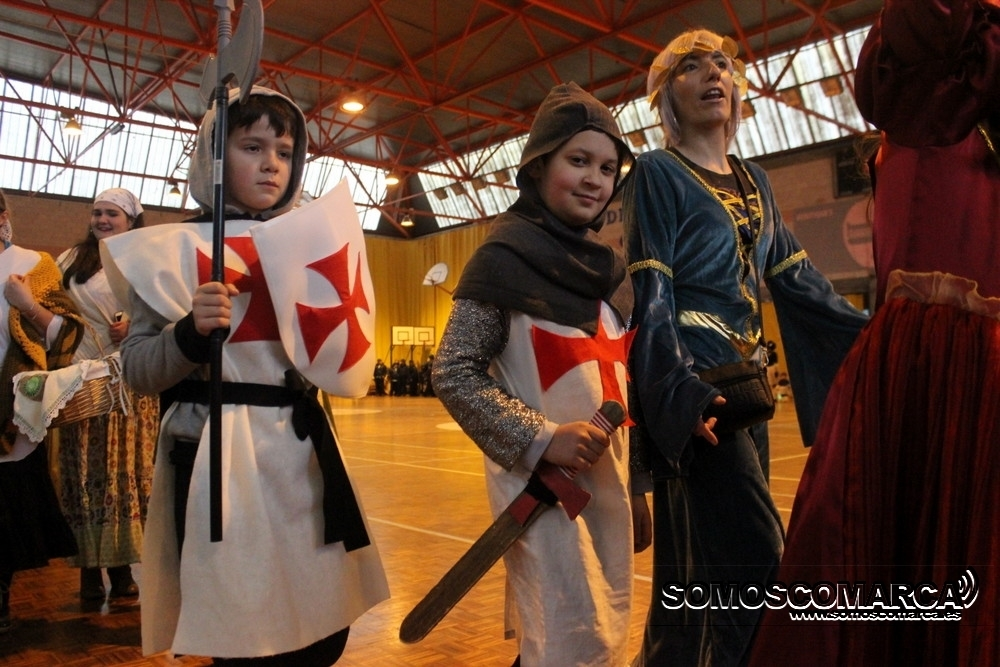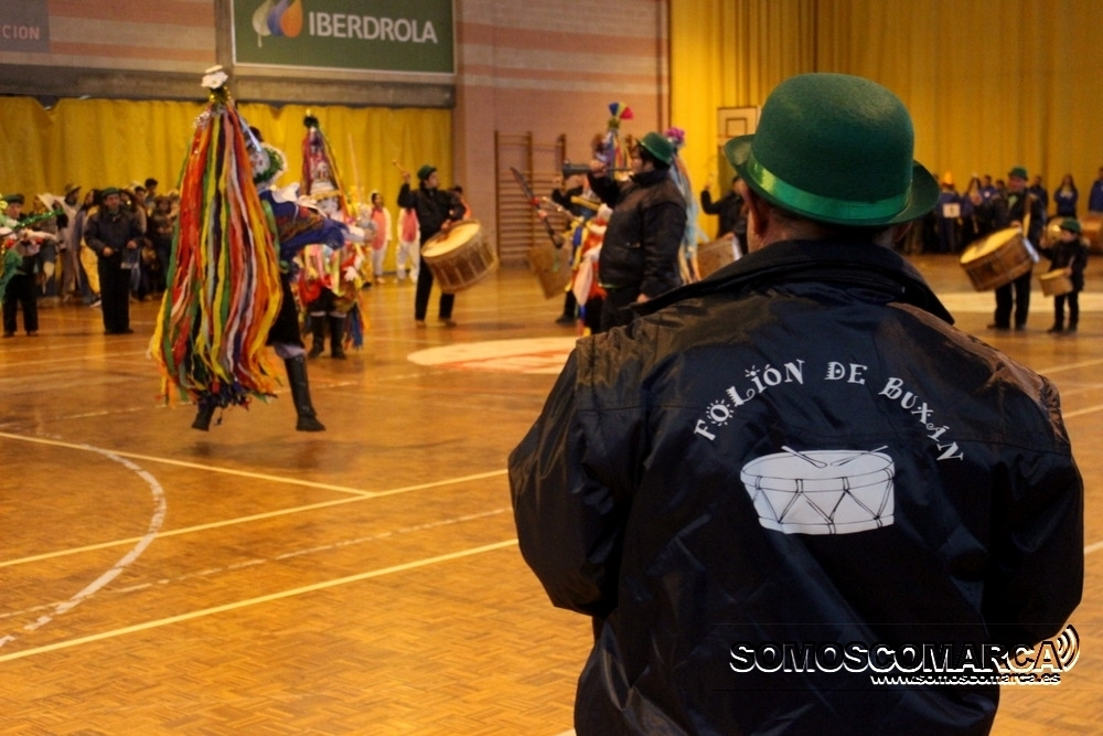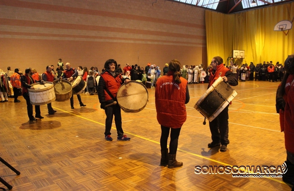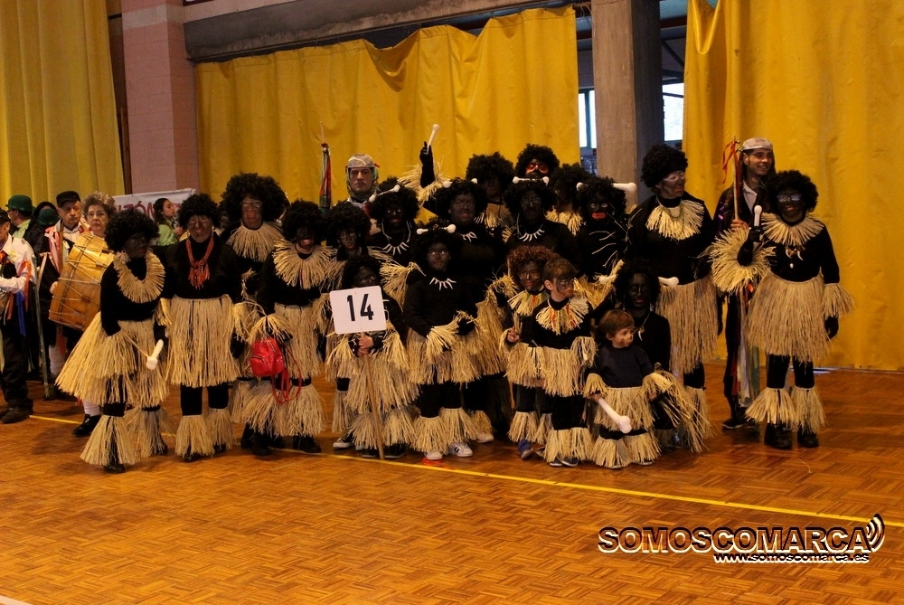 Cambiando el asfalto por el parquet, cada una de las 16 comparsas participantes fueron desfilando por el municipal rués con más de medio millar de espectadores en unas gradas que estaban a rebosar.