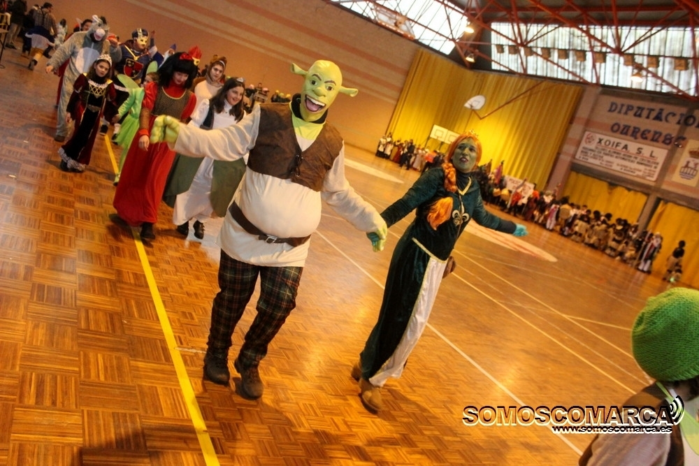 De Buxán a Petín pasando por el Manuel Respino, dentro de las agrupaciones participantes había un poco de todo. El desfile comenzó con la actuación del Folión de Buxán -una de las agrupaciones más numerosas- saliendo justo después ya bajo una canción de Morat la agrupación formada por pequeños y no tan pequeños bajo el nombre "VillaSherek", que ya dejaba muchas pistas sobre los disfraces de esta comparsa.