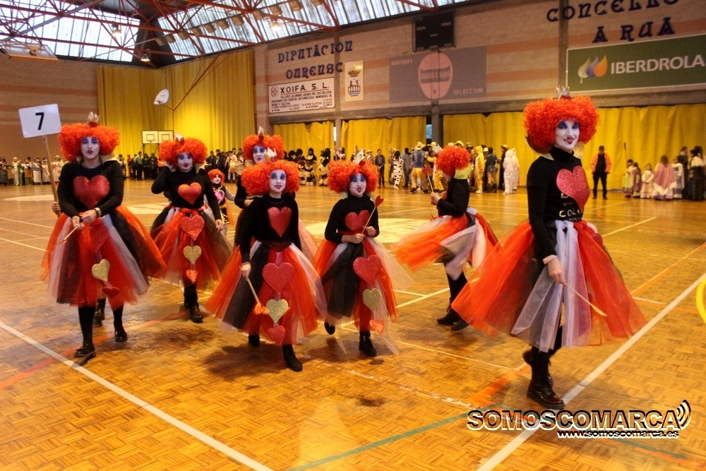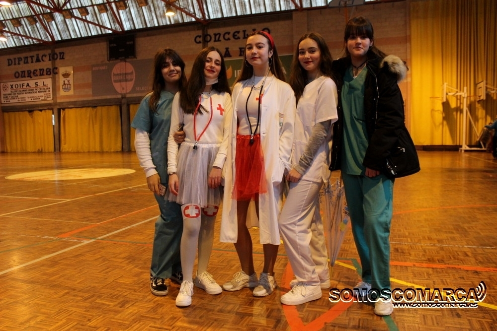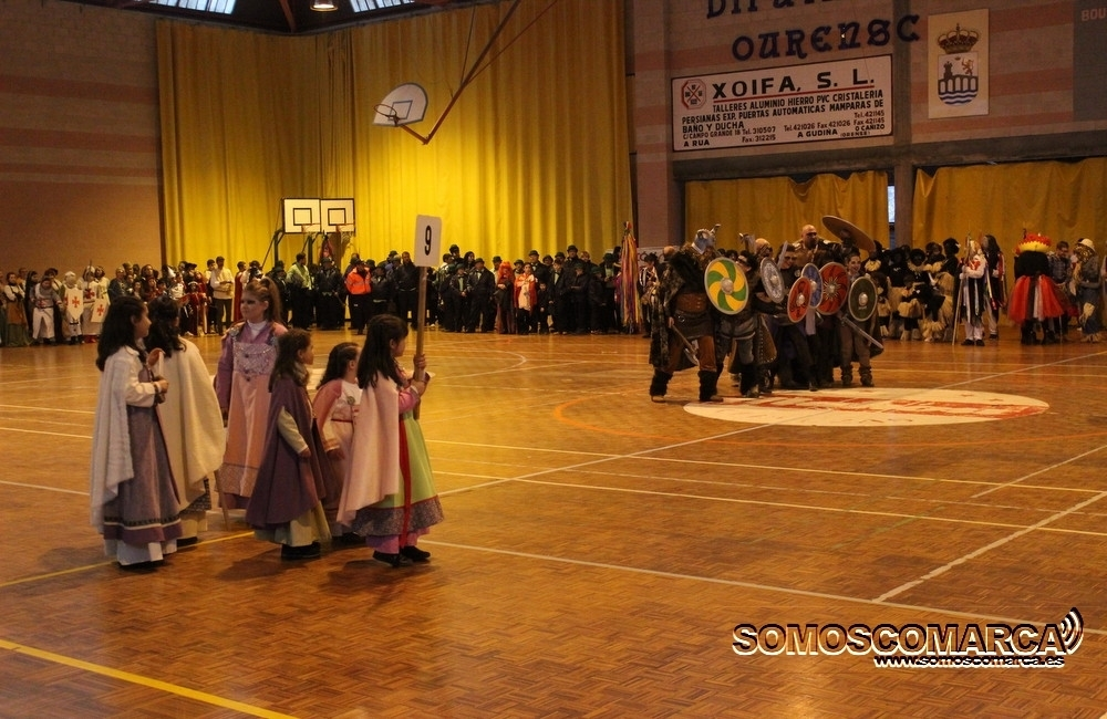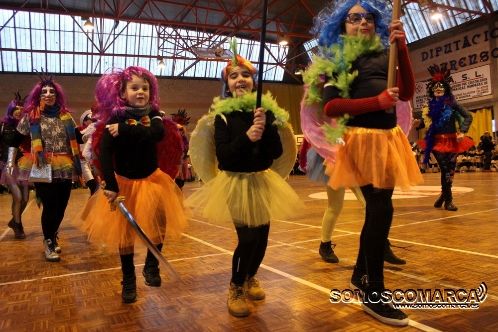 El desfile de este año en A Rúa tuvo una característica especial, fue bajo techo, pero eso no fue impedimento para disfrutar de un buen ambiente, en este caso en el Polideportivo de O Aguillón.